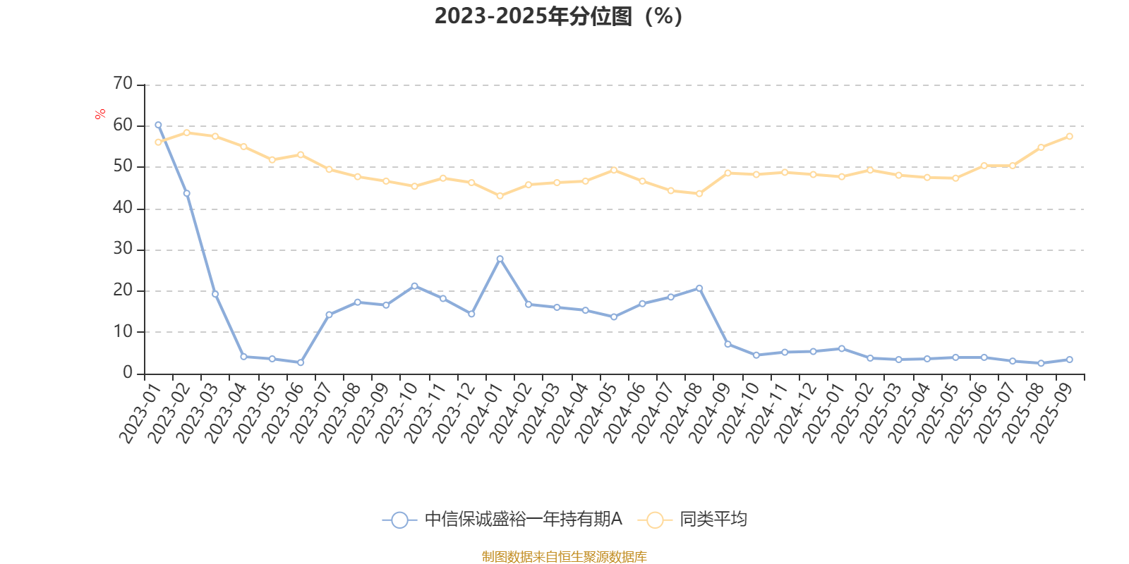 截至10月24日,中信保诚盛裕一年持有期A近三个月复权单位净值增长率为3.31%,位于同类可比基金195/629;近半年复权单位净值增长率为5.80%,位于同类可比基金269/629;近一年复权单位净值增长率为5.35%,位于同类可比基金436/623;近三年复权单位净值增长率为1.50%,位于同类可比基金503/556。