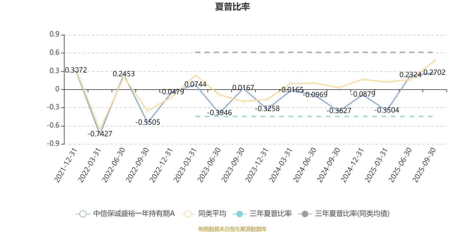 截至9月30日,基金近三年夏普比率为-0.4455,位于同类可比基金546/553。