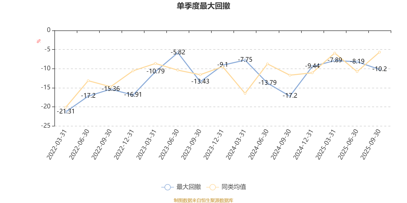 通过所选区间该基金净值增长率分位图,可以观察该基金与同类基金业绩比较情况。图为坐标原点到区间内某时点的净值增长率在同类基金中的分位数。