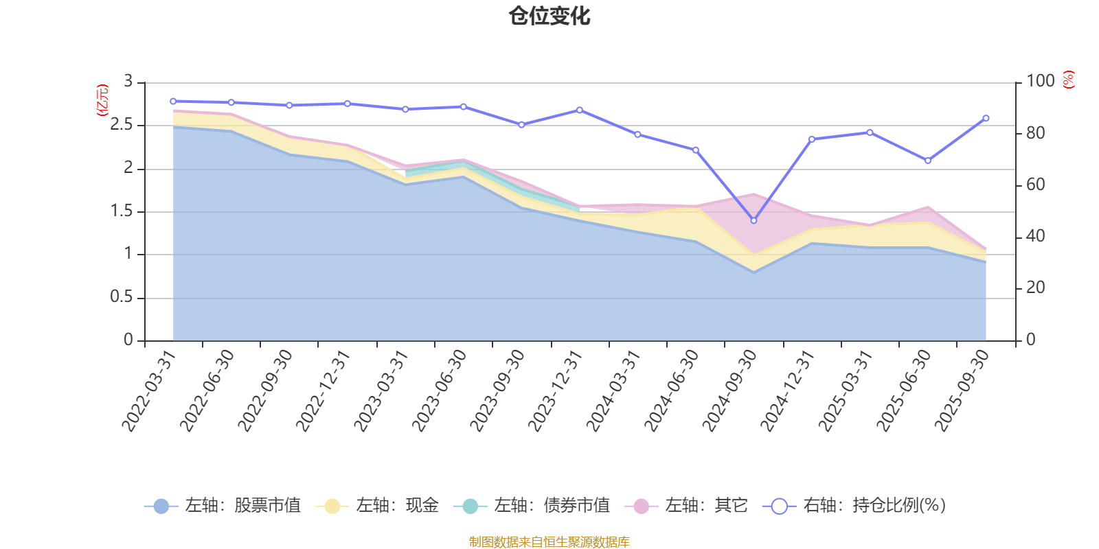 据定期报告数据统计,近三年平均股票仓位为79.95%,同类平均为85.51%。2022年一季度末基金达到92.68%的最高仓位,2024年三季度末最低,为46.51%。