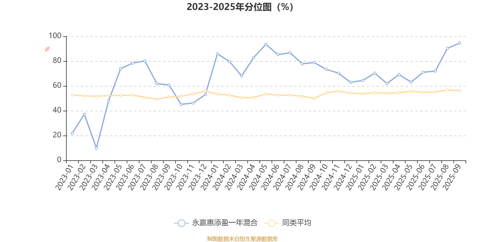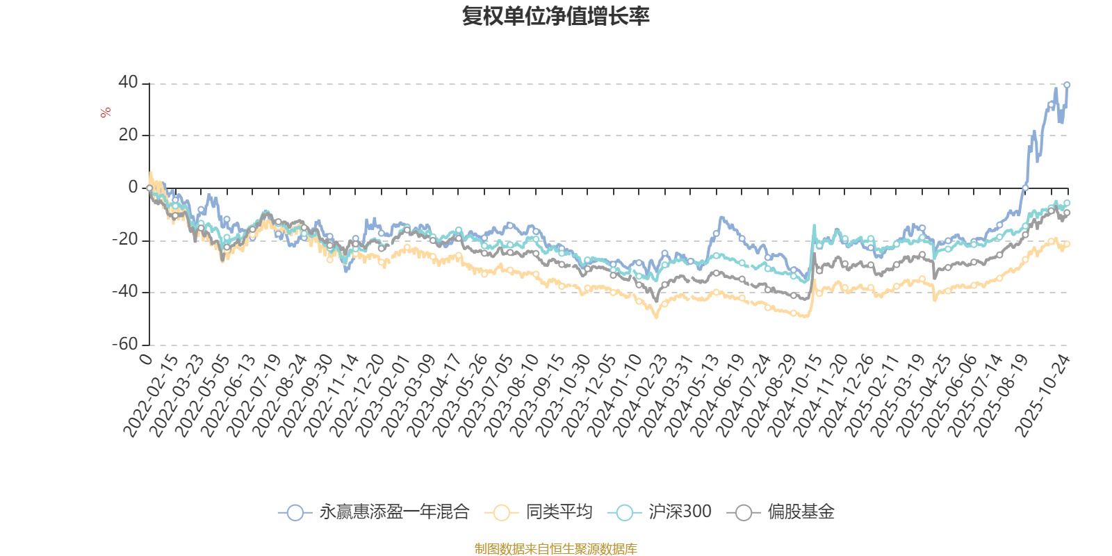 截至10月24日,永赢惠添盈一年混合近三个月复权单位净值增长率为56.64%,位于同类可比基金5/621;近半年复权单位净值增长率为75.72%,位于同类可比基金20/618;近一年复权单位净值增长率为75.37%,位于同类可比基金20/611;近三年复权单位净值增长率为90.58%,位于同类可比基金12/518。