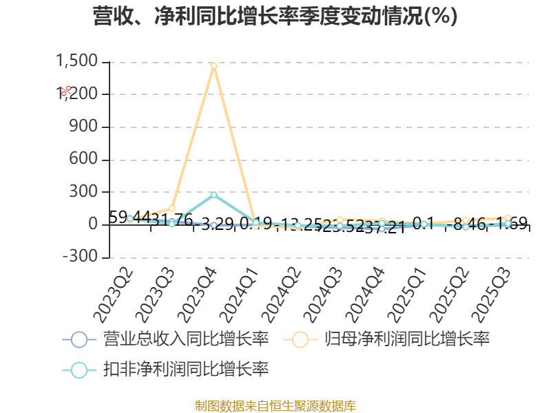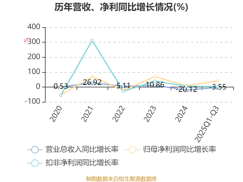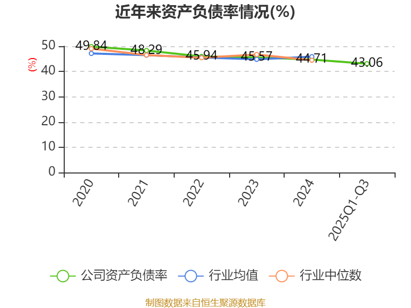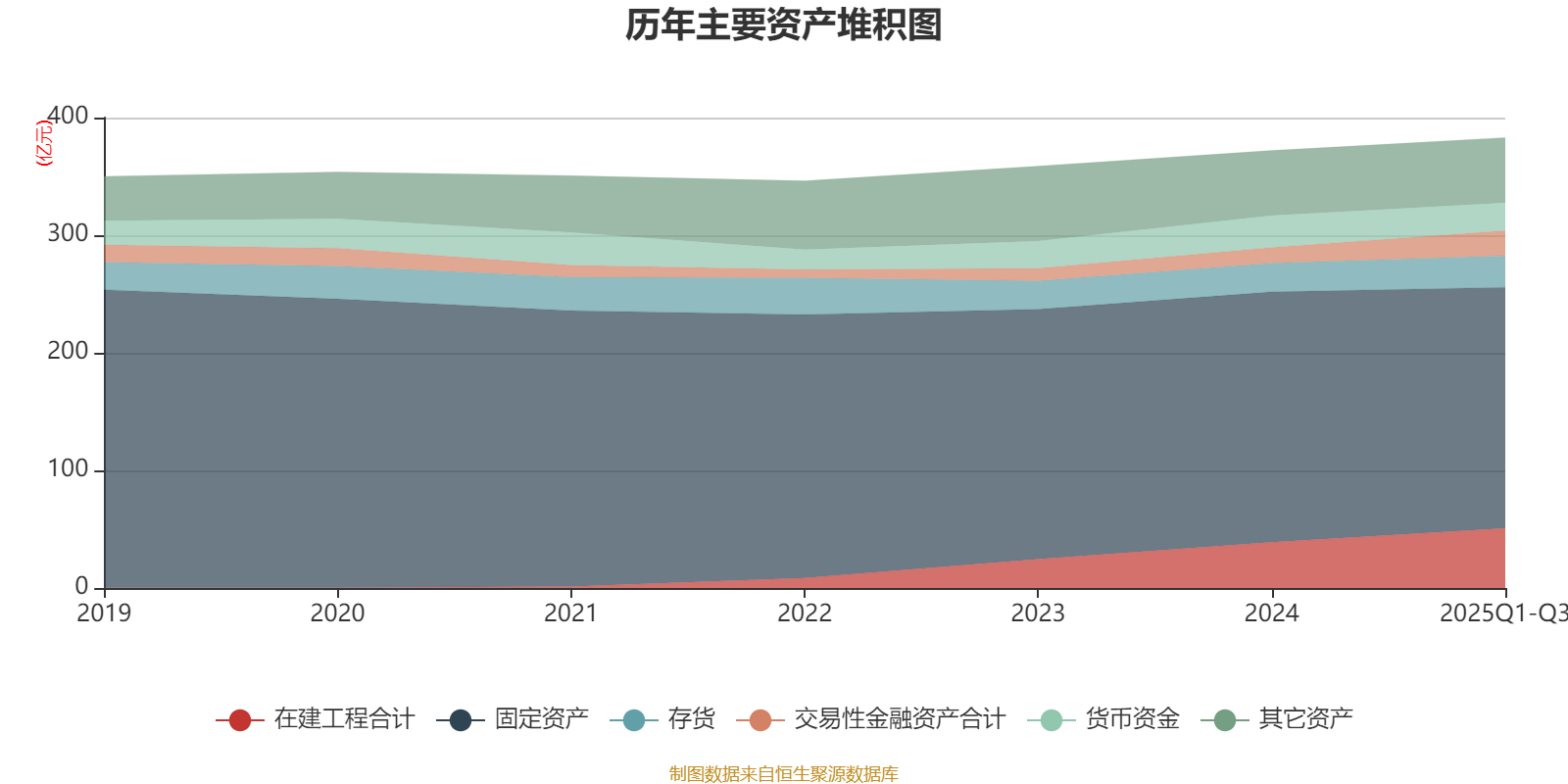 资产重大变化方面,截至2025年三季度末,公司固定资产较上年末减少3.81%,占公司总资产比重下降3.76个百分点;在建工程合计较上年末增加30.66%,占公司总资产比重上升2.81个百分点;交易性金融资产合计较上年末增加59.11%,占公司总资产比重上升1.96个百分点;货币资金较上年末减少12.28%,占公司总资产比重下降1.07个百分点。