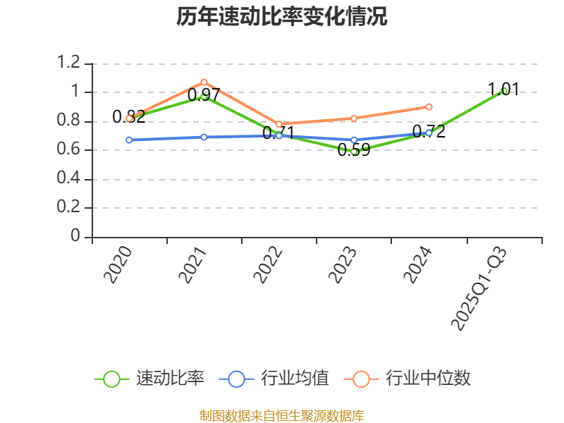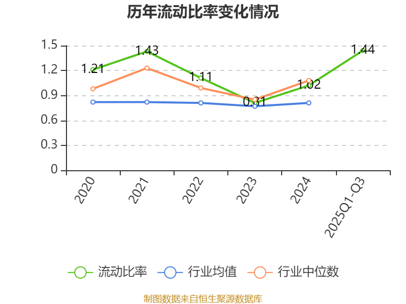 2025年前三季度,公司流动比率为1.44,速动比率为1.01。