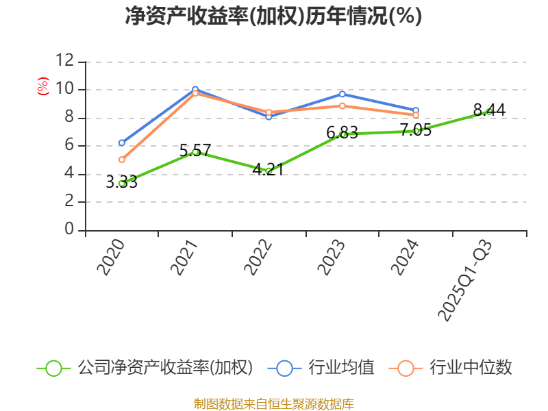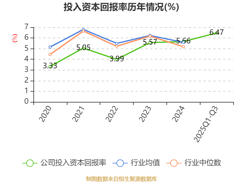 盈利能力方面, 2025年前三季度公司加权平均净资产收益率为8.44%,同比上升2.09个百分点。公司2025年前三季度投入资本回报率为6.47%,较上年同期上升1.2个百分点。