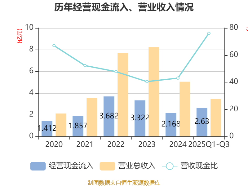2025年前三季度,公司流动比率为8.96,速动比率为7.65。