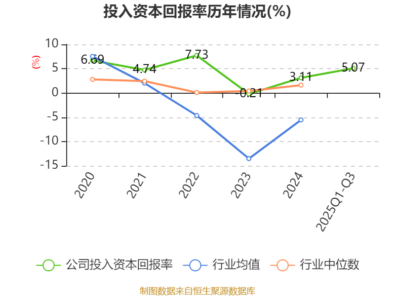 盈利能力方面, 2025年前三季度公司加权平均净资产收益率为9.75%,同比上升6.62个百分点。公司2025年前三季度投入资本回报率为5.07%,较上年同期上升2.89个百分点。