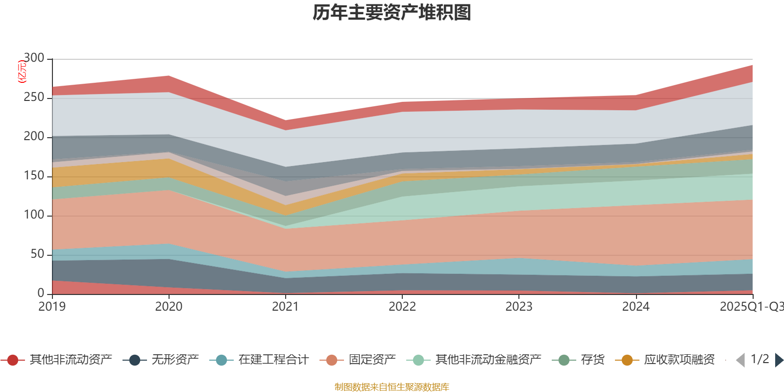 资产重大变化方面,截至2025年三季度末,公司固定资产较上年末减少1.6%,占公司总资产比重下降4.42个百分点;货币资金较上年末增加29.42%,占公司总资产比重上升2.08个百分点;应收票据及应收账款较上年末增加34.07%,占公司总资产比重上升1.52个百分点;其他非流动资产较上年末增加411.22%,占公司总资产比重上升1.24个百分点。
