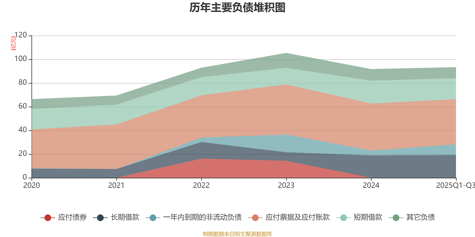 负债重大变化方面,截至2025年三季度末,公司一年内到期的非流动负债较上年末增加123.92%,占公司总资产比重上升2.7个百分点;应付票据及应付账款较上年末减少4.23%,占公司总资产比重下降1.25个百分点;短期借款较上年末减少8.47%,占公司总资产比重下降1.06个百分点;其他流动负债较上年末减少46.5%,占公司总资产比重下降0.76个百分点。