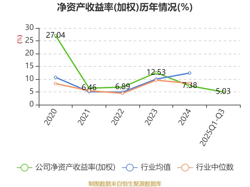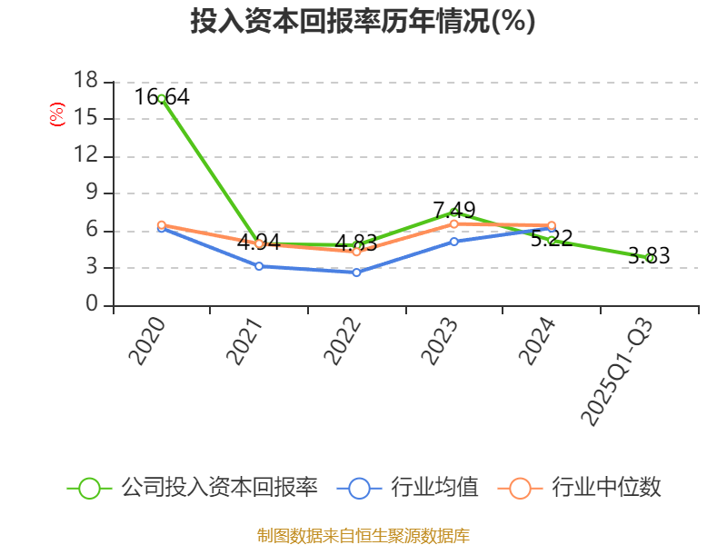 盈利能力方面, 2025年前三季度公司加权平均净资产收益率为5.03%,同比下降1.95个百分点。公司2025年前三季度投入资本回报率为3.83%,较上年同期下降0.78个百分点。