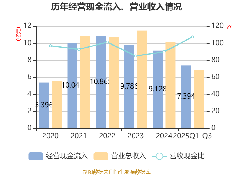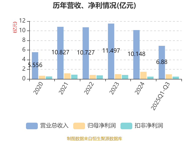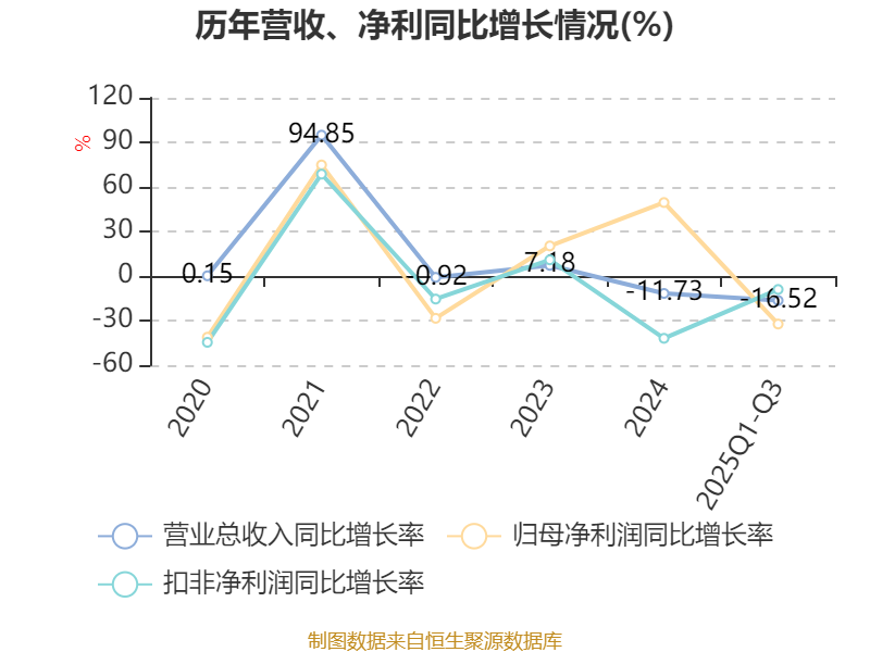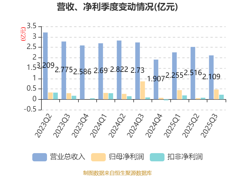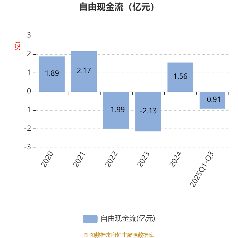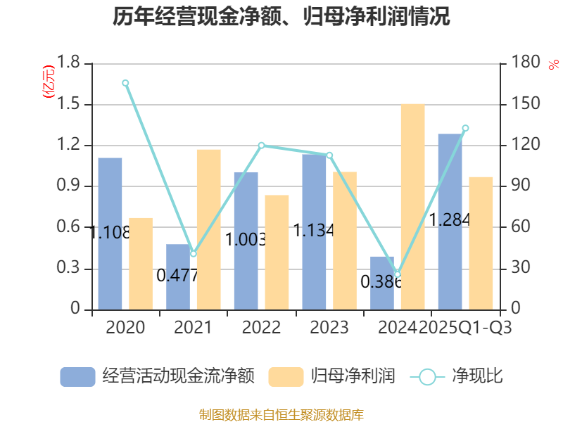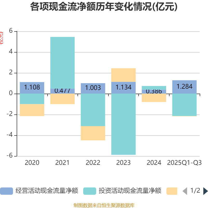 2025年前三季度,公司经营活动现金流净额为1.28亿元,同比增长152.49%;筹资活动现金流净额-328.44万元,同比增加7817.77万元;投资活动现金流净额-2.15亿元,上年同期为-1.38亿元。