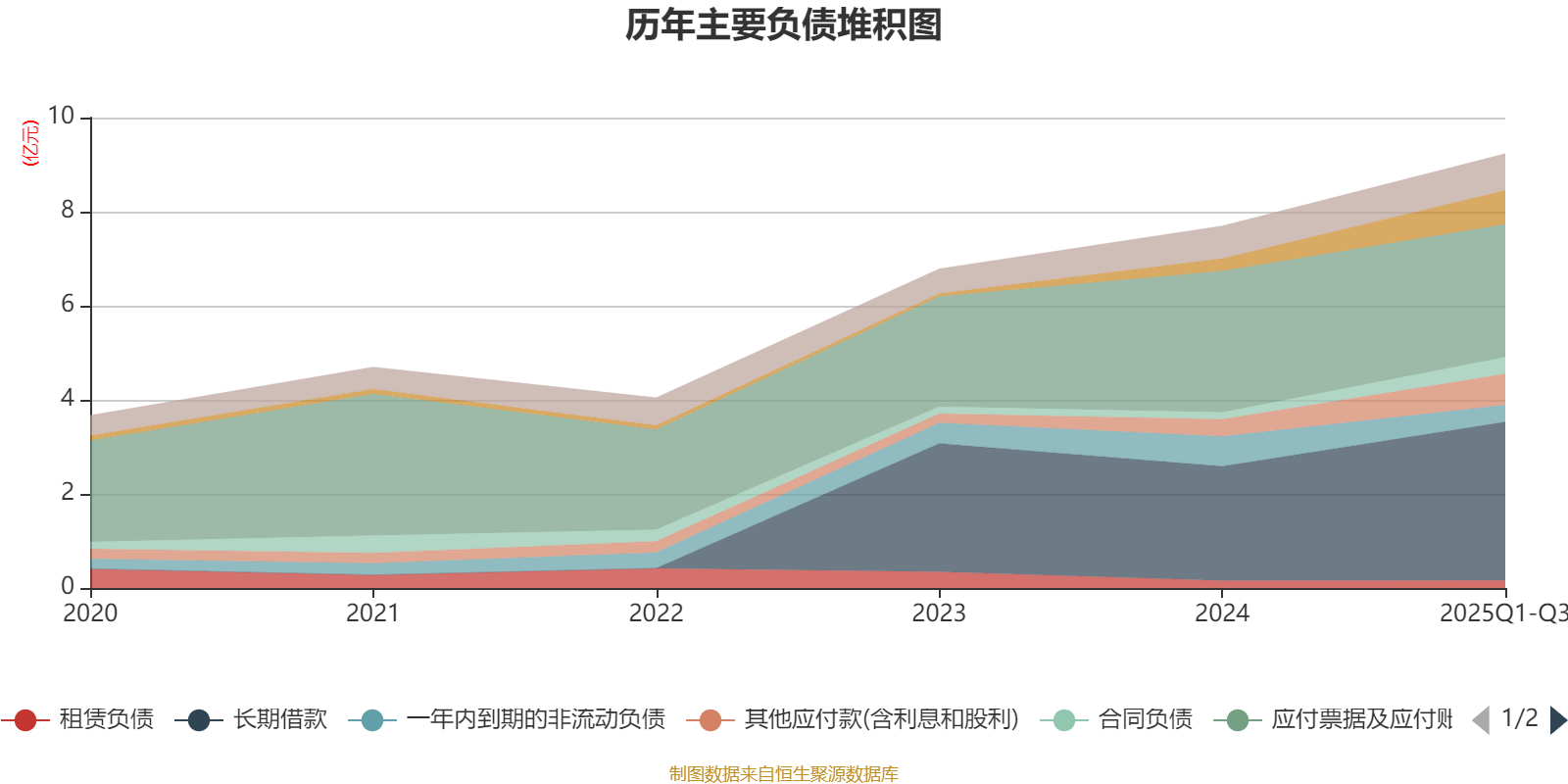 负债重大变化方面,截至2025年三季度末,公司长期借款较上年末增加38.49%,占公司总资产比重上升2.83个百分点;短期借款较上年末增加168.77%,占公司总资产比重上升1.58个百分点;应付票据及应付账款较上年末减少5.76%,占公司总资产比重下降1.34个百分点;一年内到期的非流动负债较上年末减少43.15%,占公司总资产比重下降1.14个百分点。