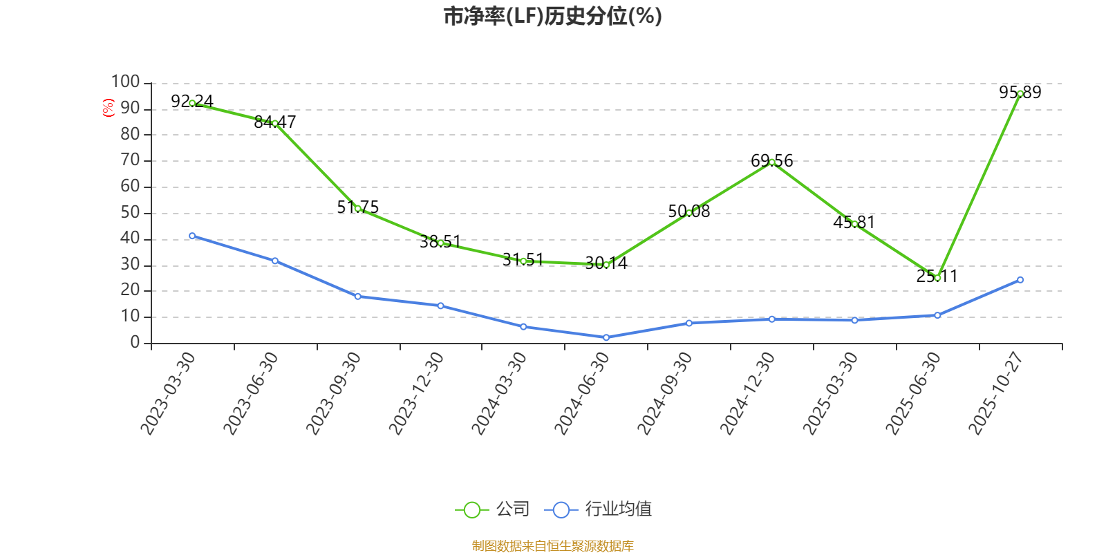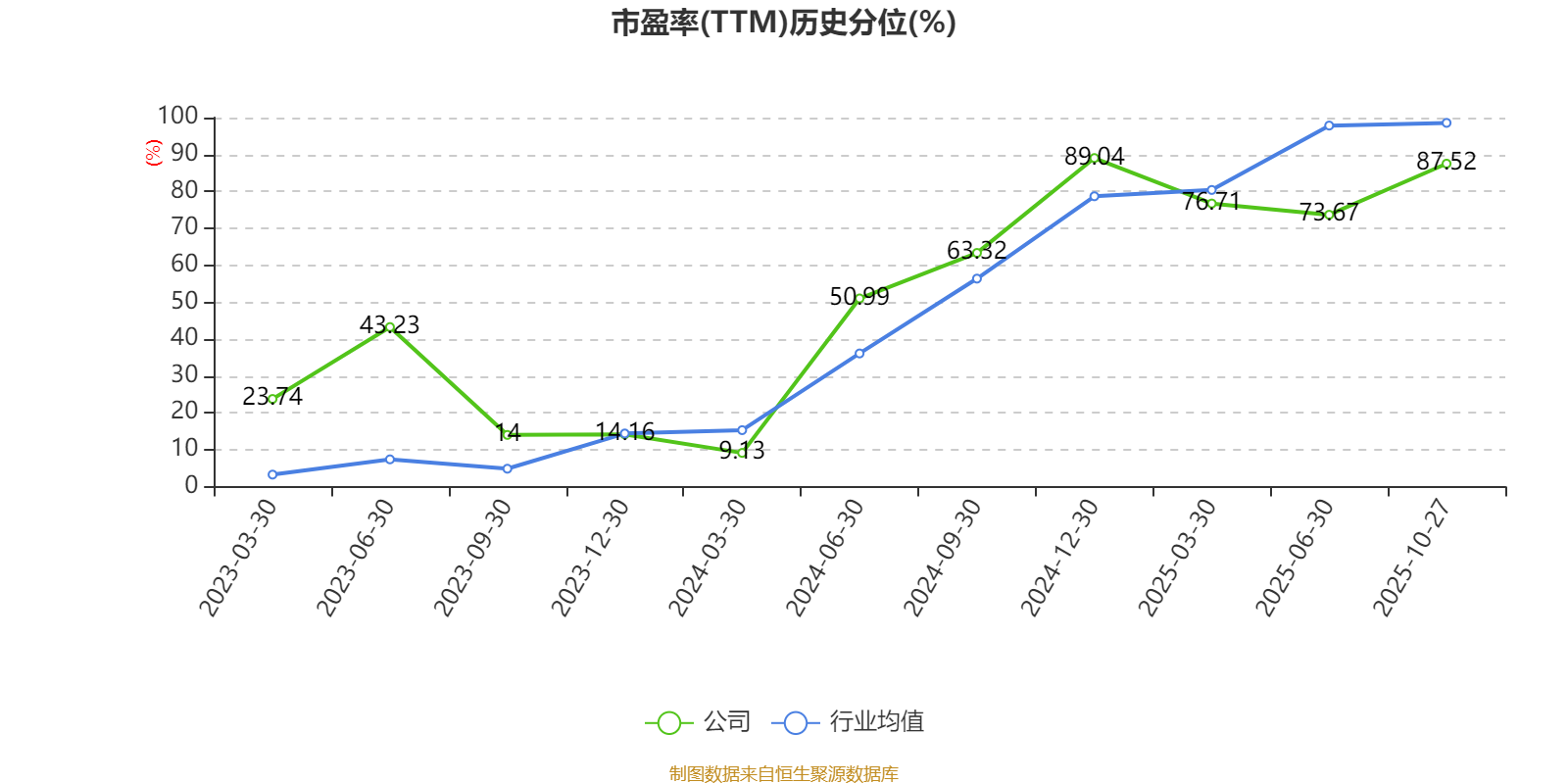 市盈率、市净率为负时,不显示当期分位数,会导致折线图中断。