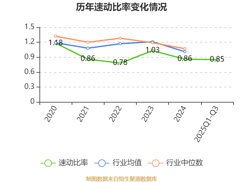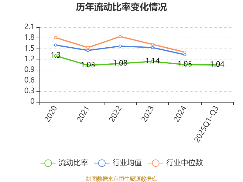 2025年前三季度,公司流动比率为1.04,速动比率为0.85。
