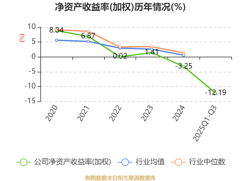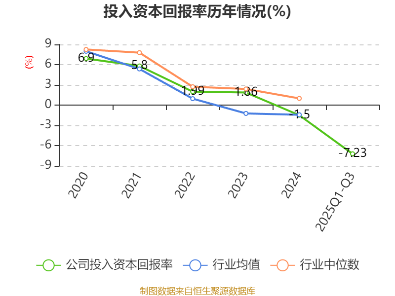 盈利能力方面, 2025年前三季度公司加权平均净资产收益率为-12.19%,同比下降2个百分点。公司2025年前三季度投入资本回报率为-7.23%,较上年同期下降0.97个百分点。