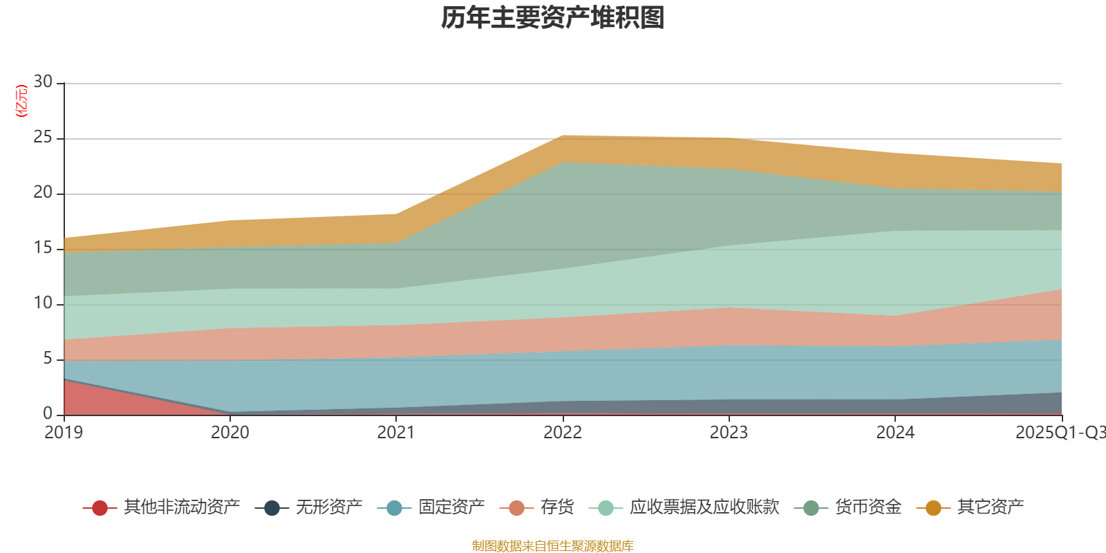 资产重大变化方面,截至2025年三季度末,公司应收票据及应收账款较上年末减少30.56%,占公司总资产比重下降8.99个百分点;存货较上年末增加65.23%,占公司总资产比重上升8.37个百分点;无形资产较上年末增加48.86%,占公司总资产比重上升2.95个百分点;开发支出较上年末减少59.03%,占公司总资产比重下降2.61个百分点。