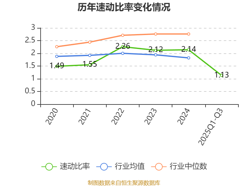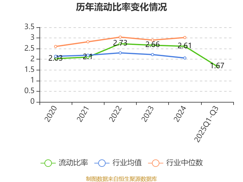 2025年前三季度,公司流动比率为1.67,速动比率为1.13。