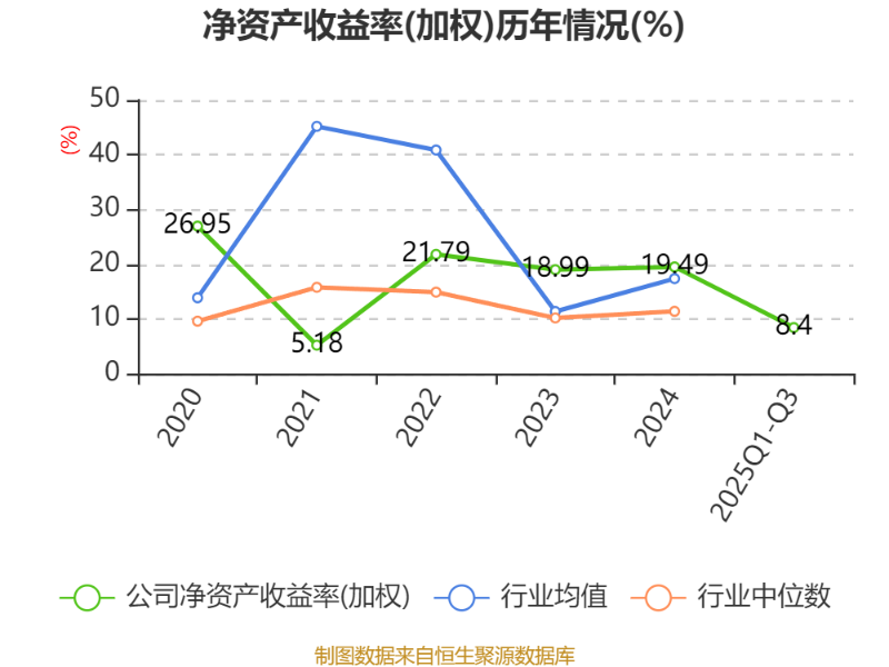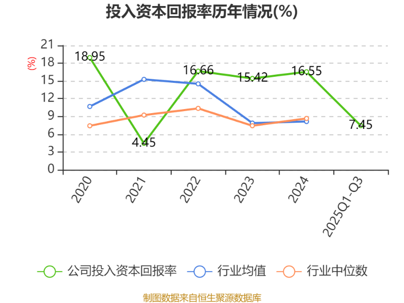 盈利能力方面, 2025年前三季度公司加权平均净资产收益率为8.4%,同比下降8.68个百分点。公司2025年前三季度投入资本回报率为7.45%,较上年同期下降6.86个百分点。