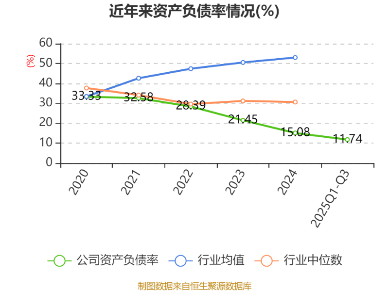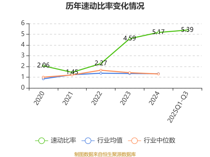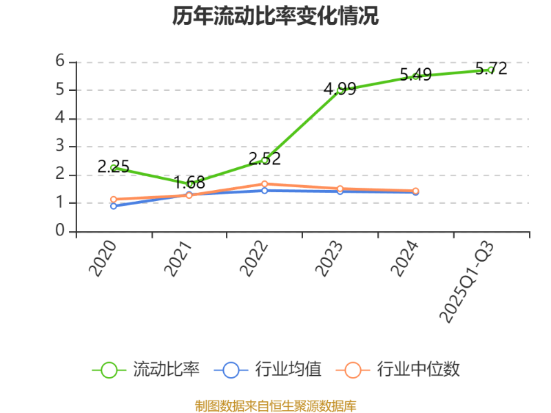 2025年前三季度,公司流动比率为5.72,速动比率为5.39。