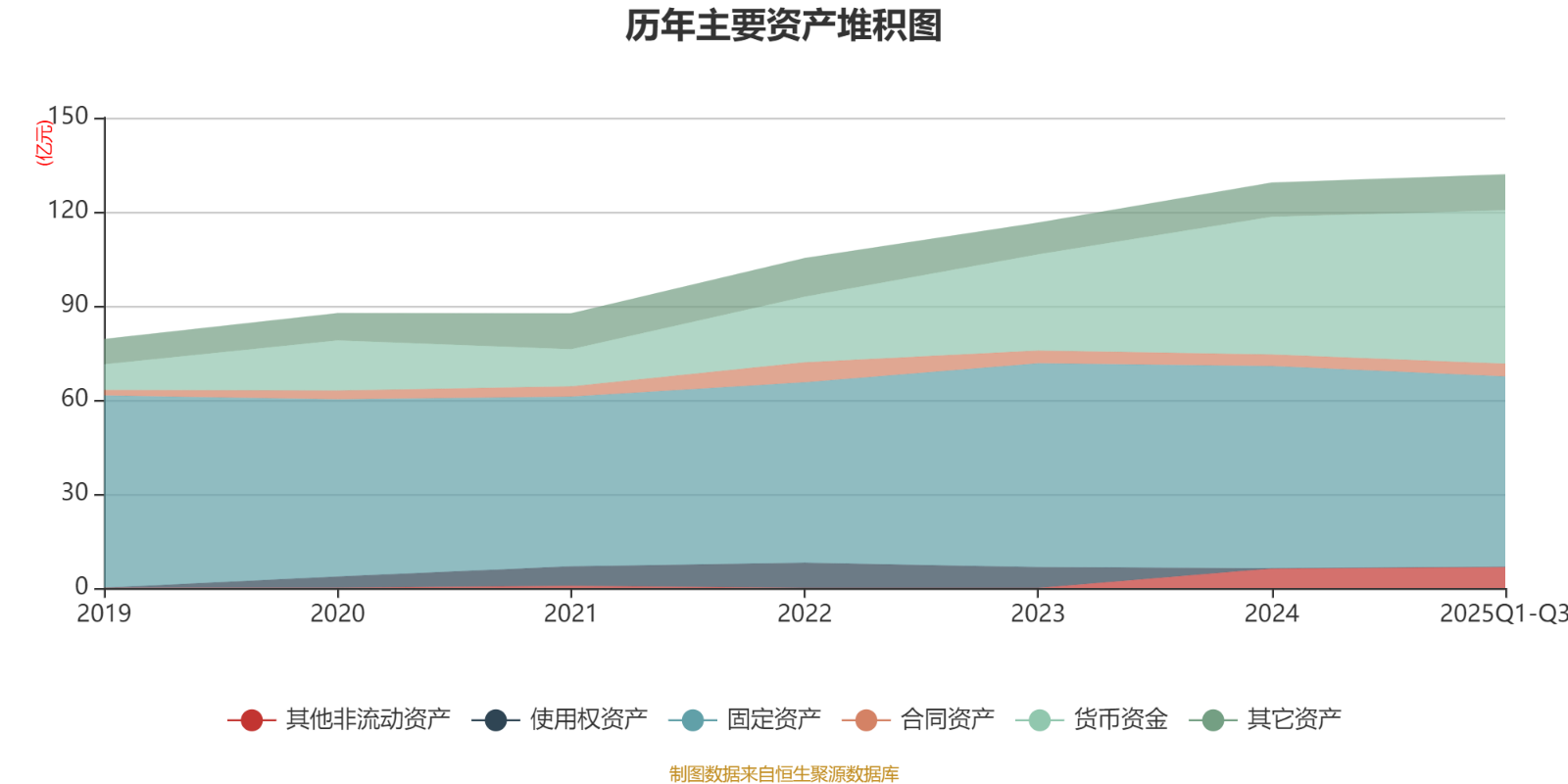 资产重大变化方面,截至2025年三季度末,公司固定资产较上年末减少5.74%,占公司总资产比重下降3.8个百分点;货币资金较上年末增加11.45%,占公司总资产比重上升3.14个百分点;在建工程合计较上年末增加193.85%,占公司总资产比重上升0.68个百分点;其他流动资产较上年末减少92.11%,占公司总资产比重下降0.34个百分点。