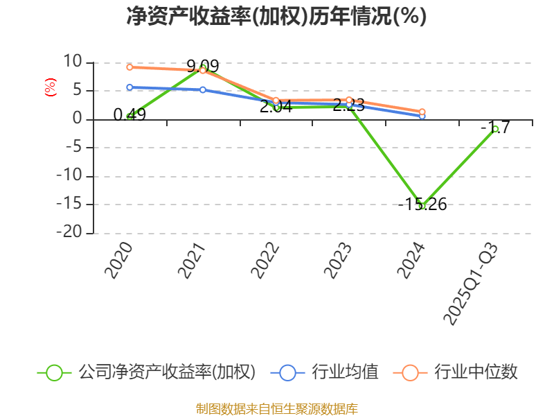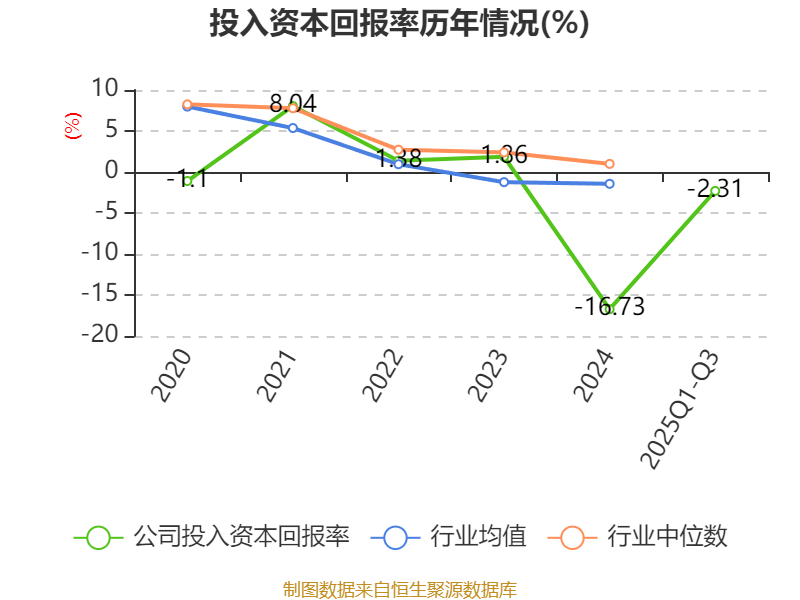 盈利能力方面, 2025年前三季度公司加权平均净资产收益率为-1.7%,同比下降1.24个百分点。公司2025年前三季度投入资本回报率为-2.31%,较上年同期下降1.37个百分点。