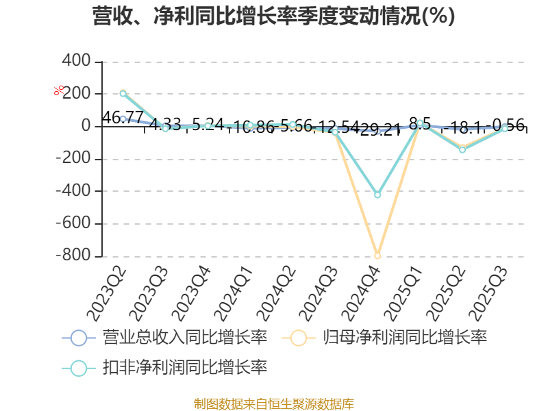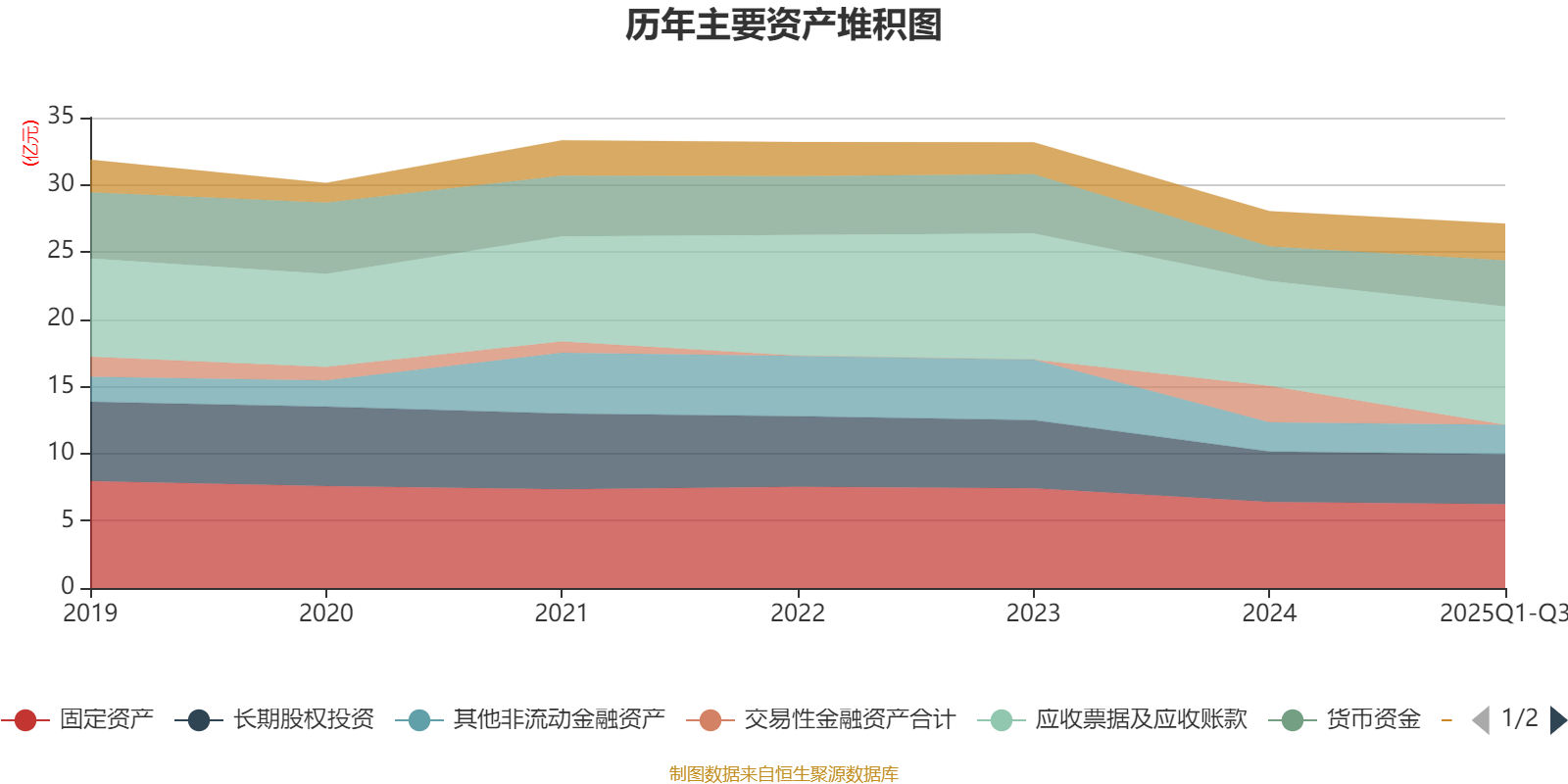 资产重大变化方面,截至2025年三季度末,公司交易性金融资产合计较上年末减少99.92%,占公司总资产比重下降9.65个百分点;应收票据及应收账款较上年末增加12.8%,占公司总资产比重上升4.64个百分点;货币资金较上年末增加33.63%,占公司总资产比重上升3.5个百分点;存货较上年末增加88.8%,占公司总资产比重上升2.06个百分点。