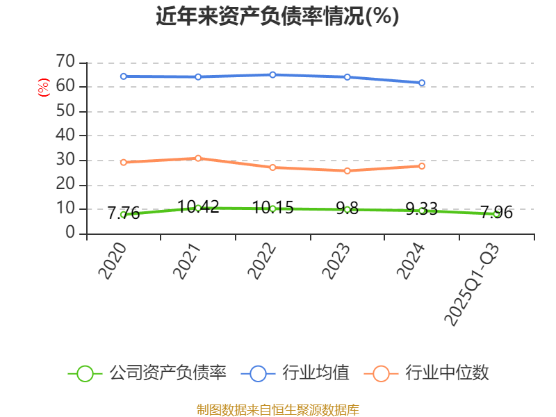 2025年前三季度,公司流动比率为6.53,速动比率为5.99。
