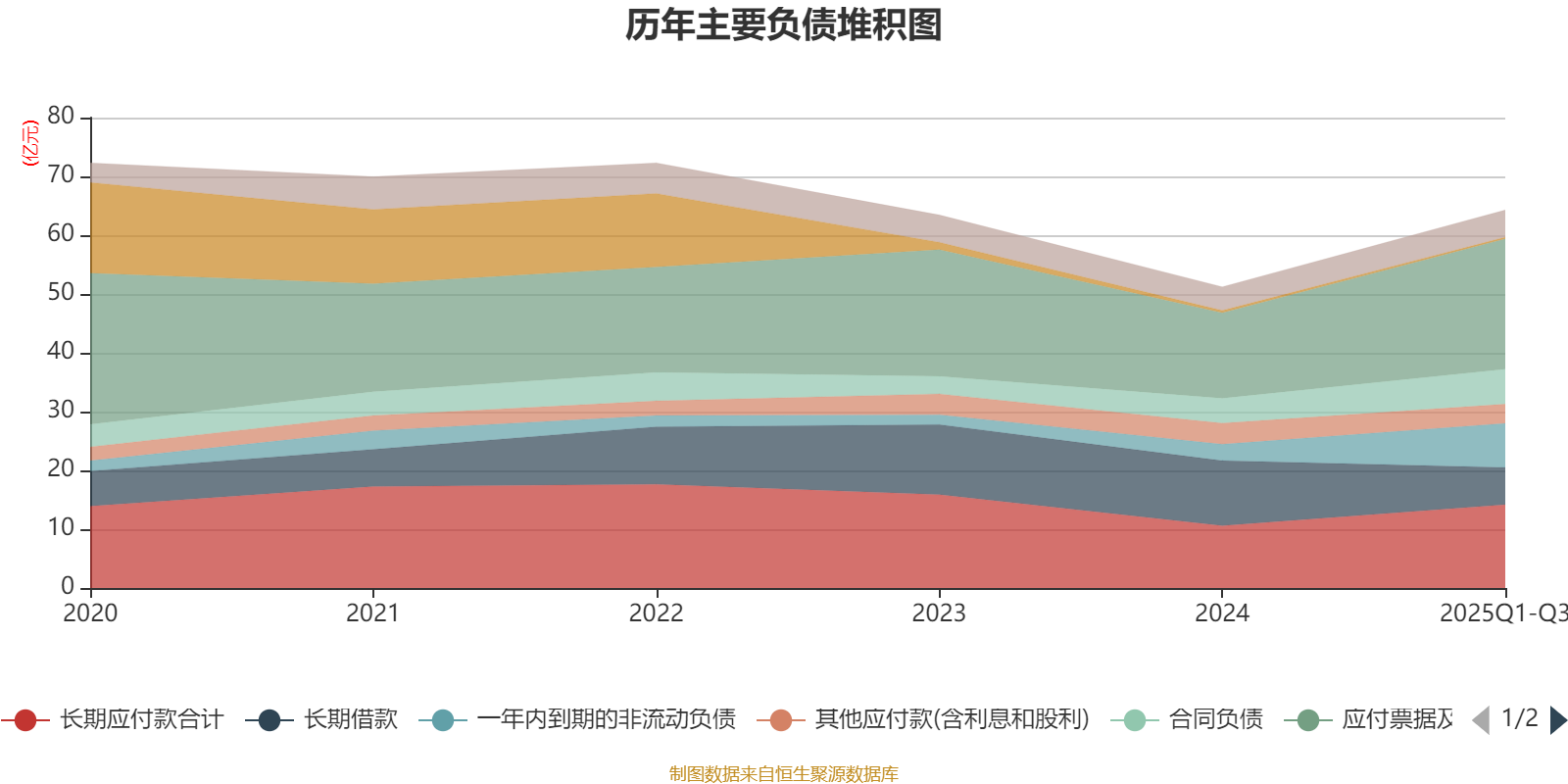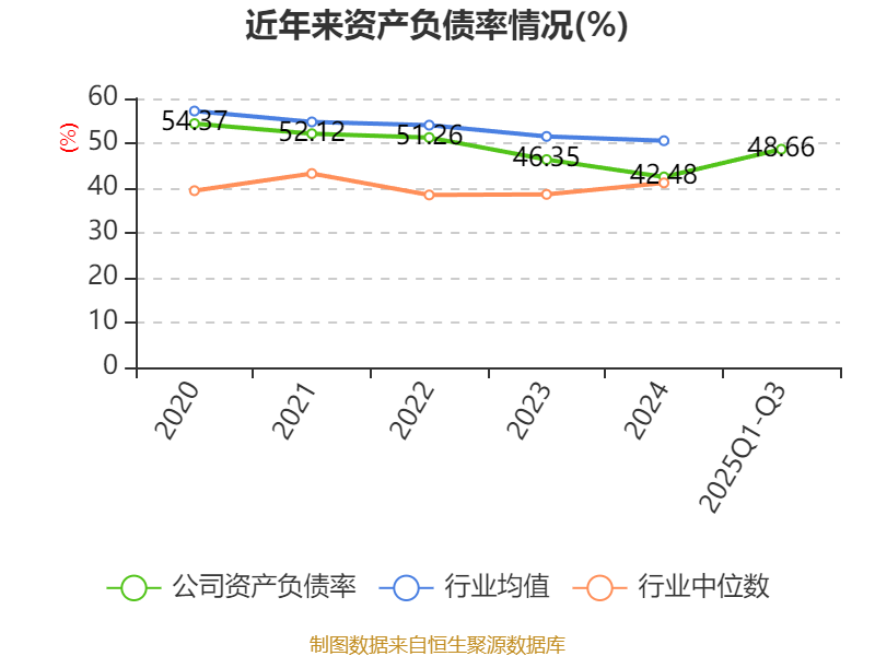 负债重大变化方面,截至2025年三季度末,公司应付票据及应付账款较上年末增加52.56%,占公司总资产比重上升4.73个百分点;长期借款较上年末减少42.9%,占公司总资产比重下降4.39个百分点;一年内到期的非流动负债较上年末增加168.03%,占公司总资产比重上升3.36个百分点;长期应付款合计较上年末增加33.73%,占公司总资产比重上升1.94个百分点。