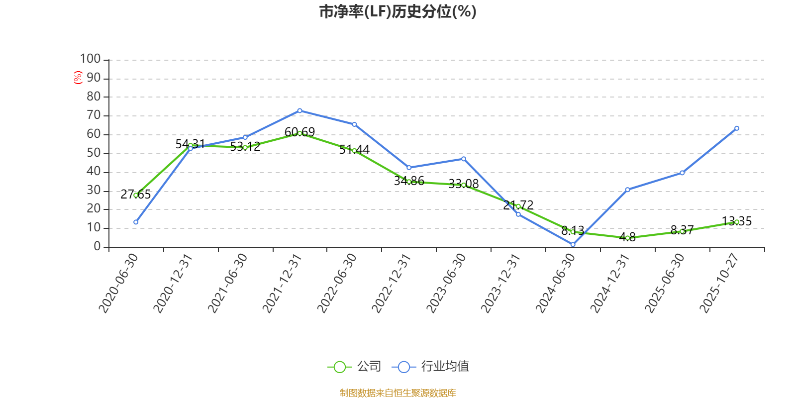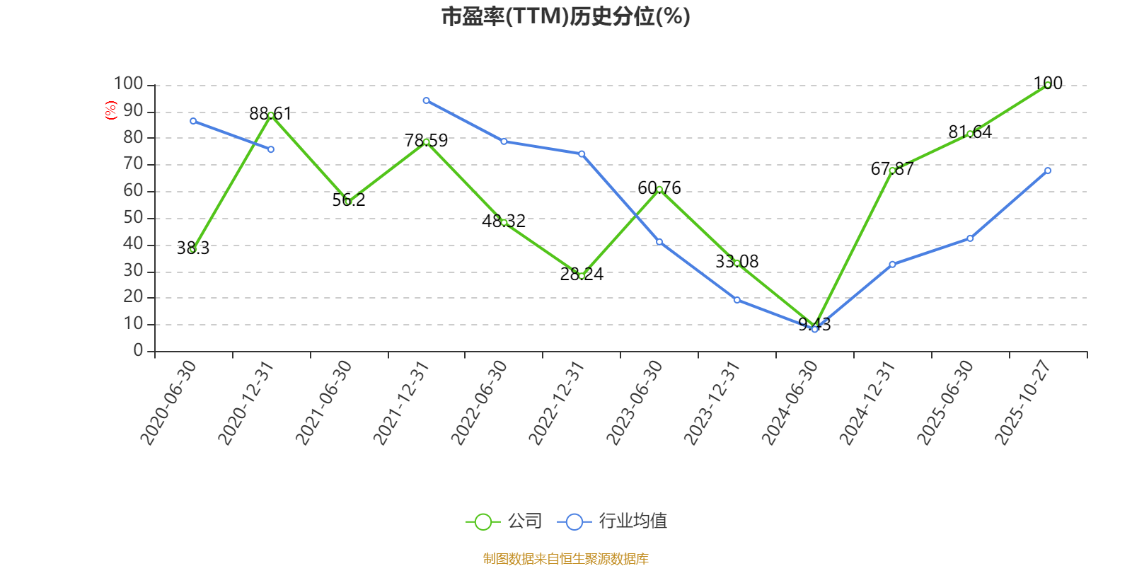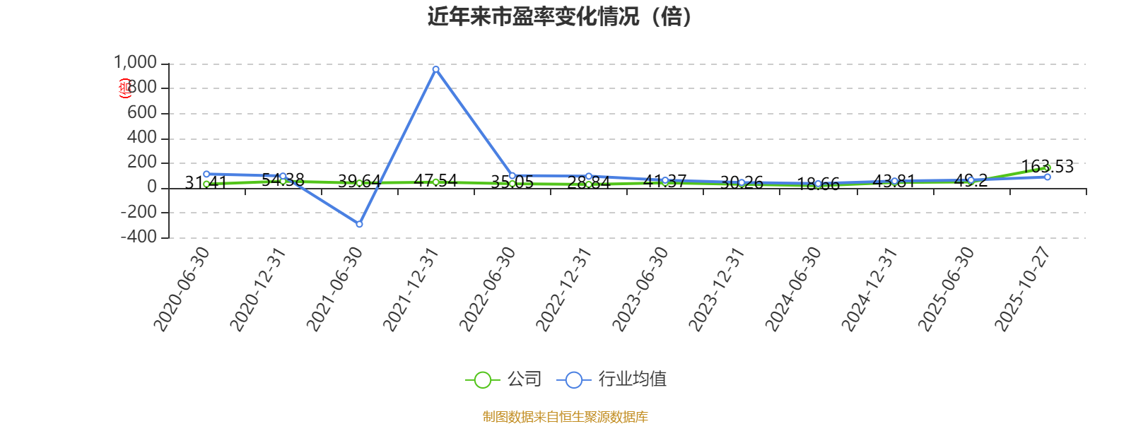 市盈率、市净率为负时,不显示当期分位数,会导致折线图中断。