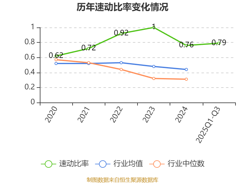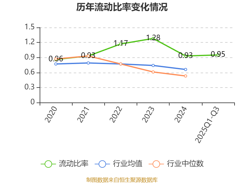2025年前三季度,公司流动比率为0.95,速动比率为0.79。