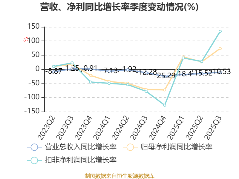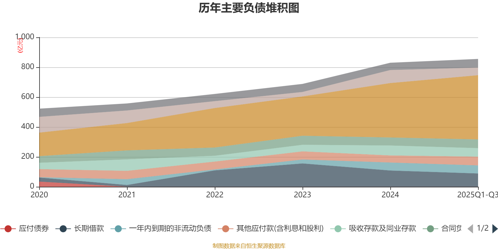 负债重大变化方面,截至2025年三季度末,公司应付票据及应付账款较上年末增加18.02%,占公司总资产比重上升3.32个百分点;短期借款较上年末减少41.66%,占公司总资产比重下降2.59个百分点;长期借款较上年末减少18.61%,占公司总资产比重下降1.59个百分点;吸收存款及同业存款较上年末减少14.15%,占公司总资产比重下降0.78个百分点。