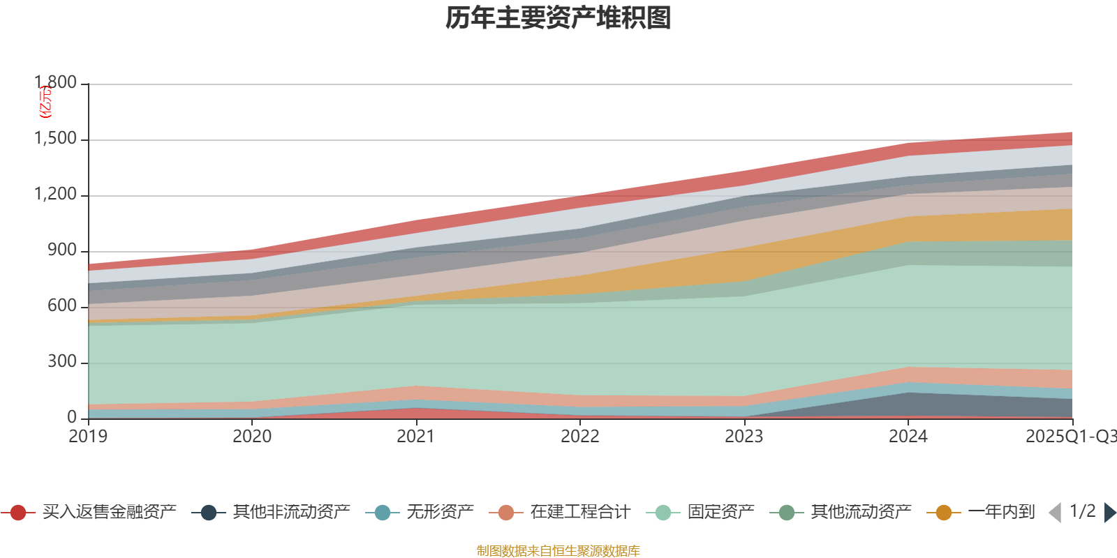 资产重大变化方面,截至2025年三季度末,公司其他非流动资产较上年末减少22.09%,占公司总资产比重下降2.12个百分点;一年内到期的非流动资产较上年末增加24.95%,占公司总资产比重上升1.85个百分点;应收款项融资较上年末增加42.55%,占公司总资产比重上升1.24个百分点;在建工程合计较上年末增加22.66%,占公司总资产比重上升0.99个百分点。