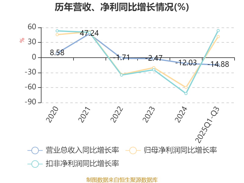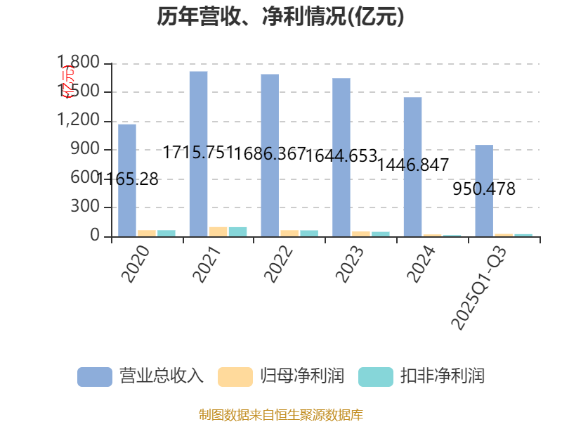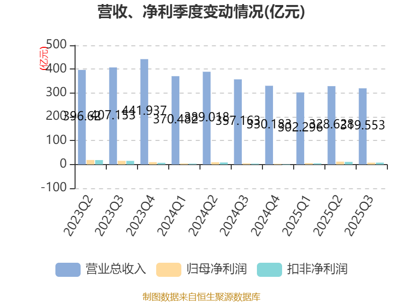 2025年前三季度,公司经营活动现金流净额为60.01亿元,同比下降29.56%;筹资活动现金流净额-20.67亿元,同比减少137.9亿元;投资活动现金流净额-58.08亿元,上年同期为-163.6亿元。