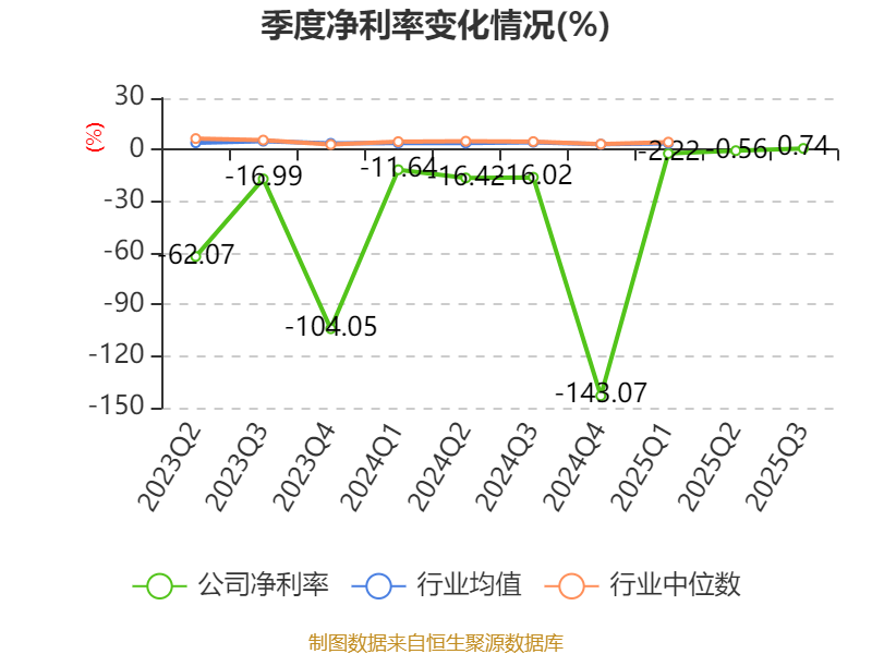 盈利能力方面, 2025年前三季度公司加权平均净资产收益率为-0.65%,同比上升8个百分点。公司2025年前三季度投入资本回报率为-0.73%,较上年同期上升9.19个百分点。