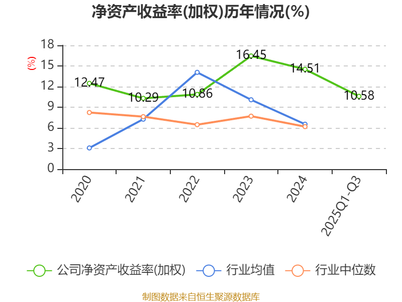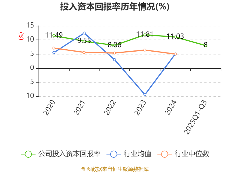 盈利能力方面, 2025年前三季度公司加权平均净资产收益率为10.58%,同比下降0.02个百分点。公司2025年前三季度投入资本回报率为8%,较上年同期上升0.18个百分点。