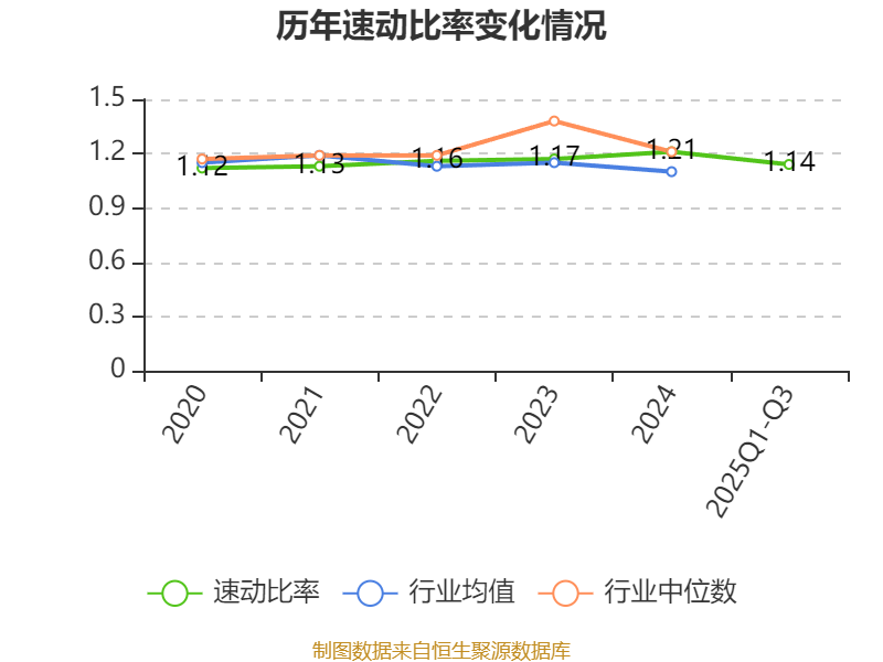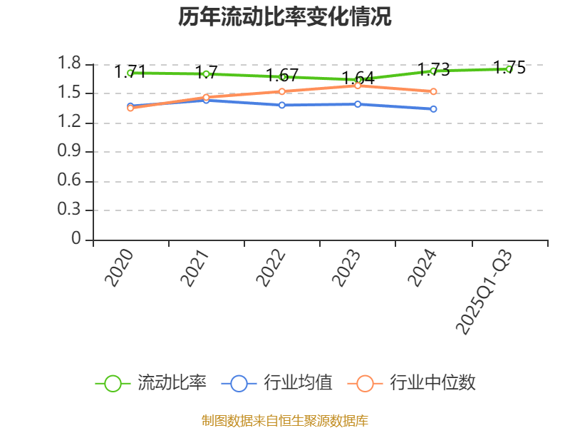 2025年前三季度,公司流动比率为1.75,速动比率为1.14。