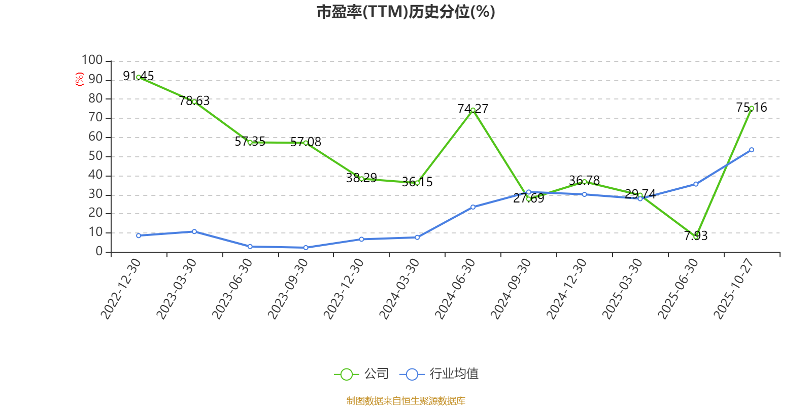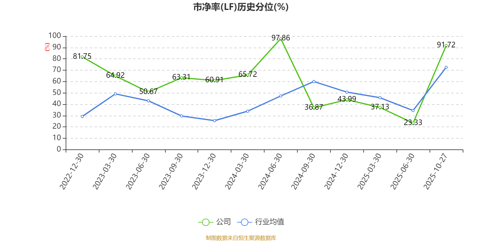 市盈率、市净率为负时,不显示当期分位数,会导致折线图中断。