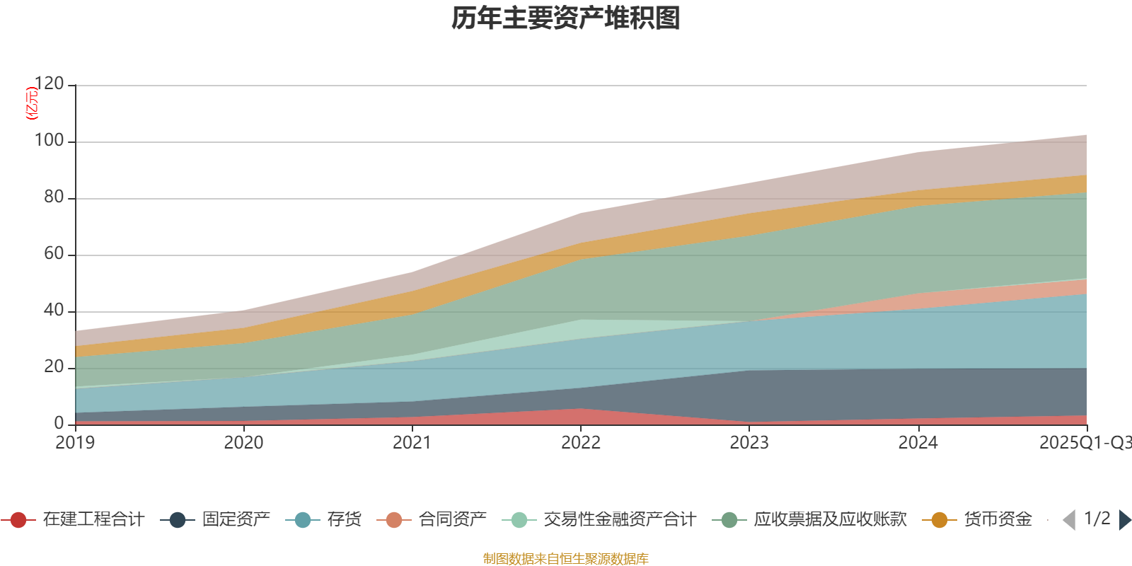 资产重大变化方面,截至2025年三季度末,公司存货较上年末增加23.97%,占公司总资产比重上升3.63个百分点;应收票据及应收账款较上年末减少1.67%,占公司总资产比重下降2.44个百分点;固定资产较上年末减少4.98%,占公司总资产比重下降1.95个百分点;在建工程合计较上年末增加49.09%,占公司总资产比重上升0.89个百分点。