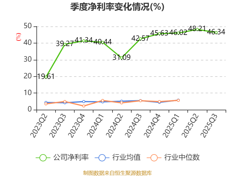 盈利能力方面, 2025年前三季度公司加权平均净资产收益率为23.06%,同比上升9.1个百分点。公司2025年前三季度投入资本回报率为22.85%,较上年同期上升8.65个百分点。