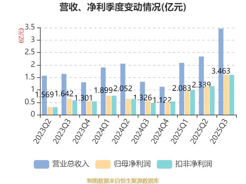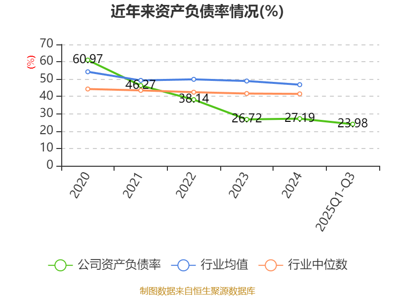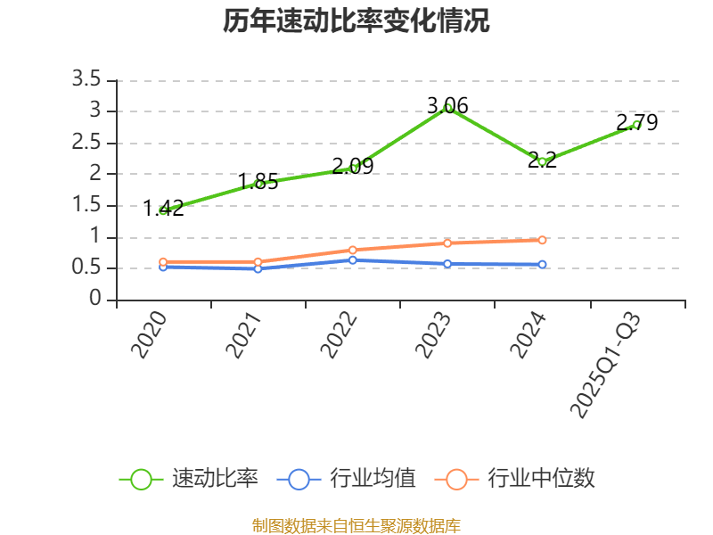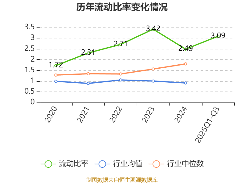 2025年前三季度,公司流动比率为3.09,速动比率为2.79。