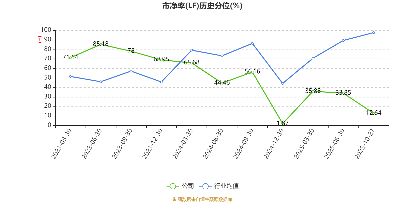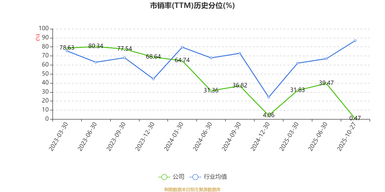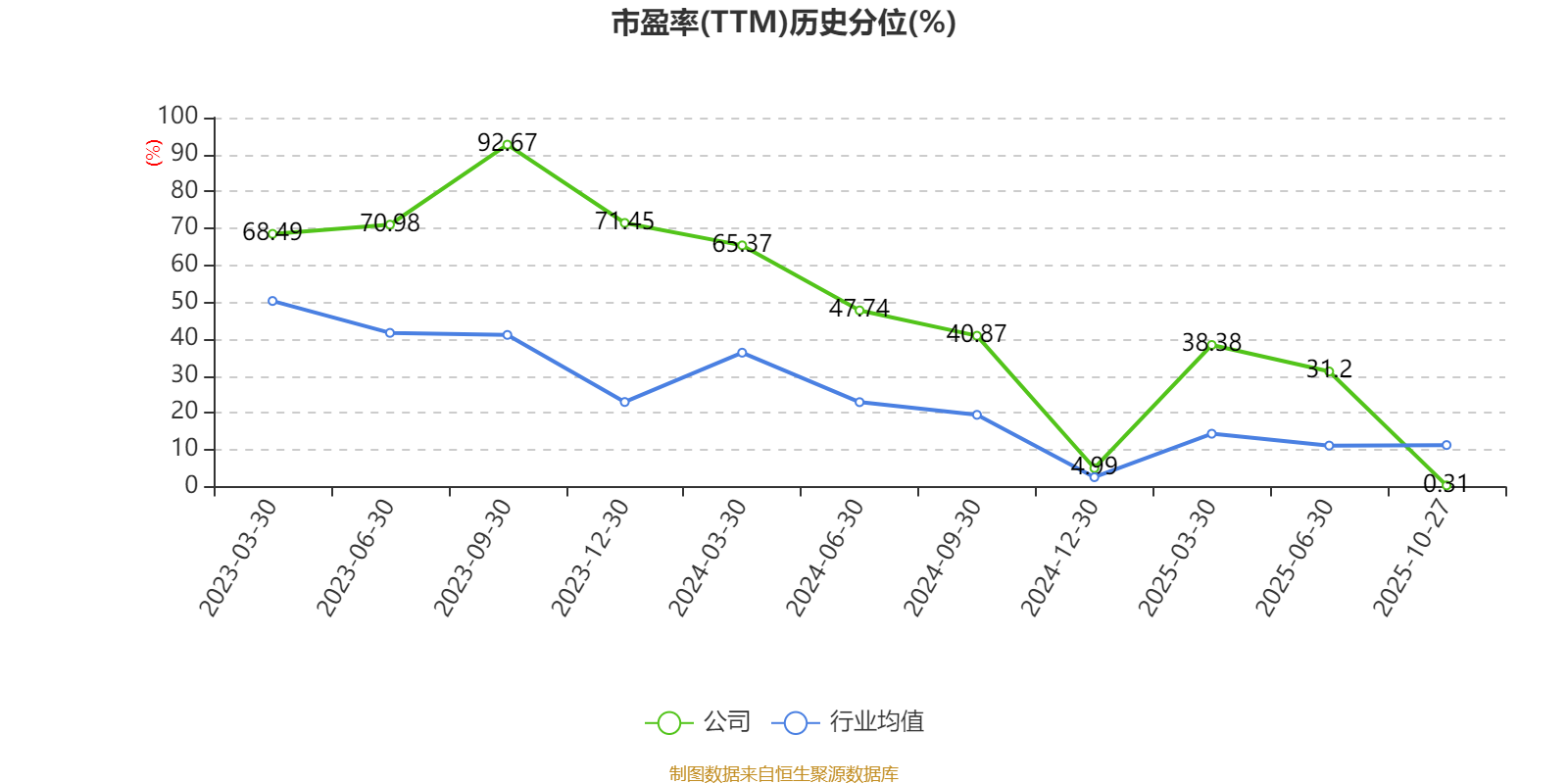 市盈率、市净率为负时,不显示当期分位数,会导致折线图中断。