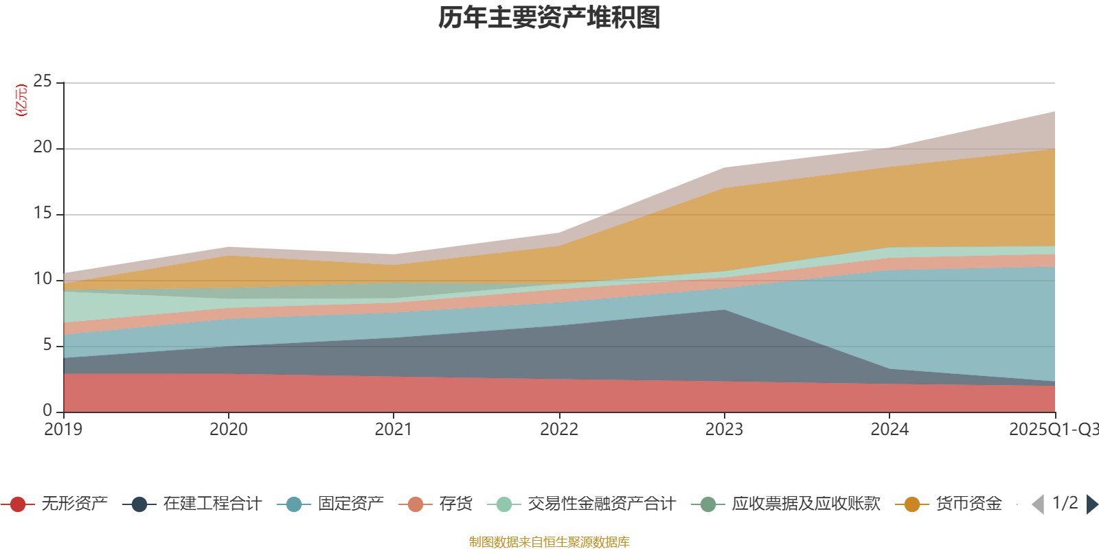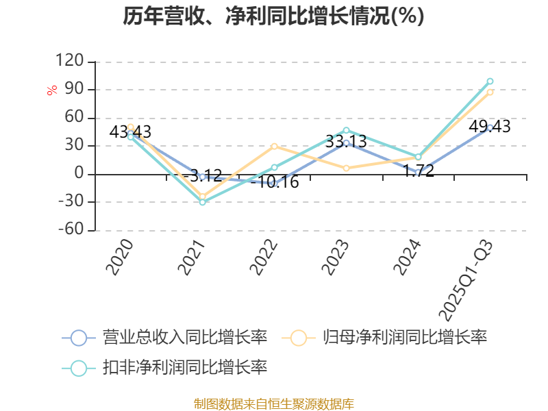 资产重大变化方面,截至2025年三季度末,公司在建工程合计较上年末减少69.88%,占公司总资产比重下降4.17个百分点;其他应收款(含利息和股利)较上年末增加5900.11%,占公司总资产比重上升3.95个百分点;其他非流动资产较上年末增加12505.9%,占公司总资产比重上升2.16个百分点;货币资金较上年末增加21.04%,占公司总资产比重上升1.96个百分点。