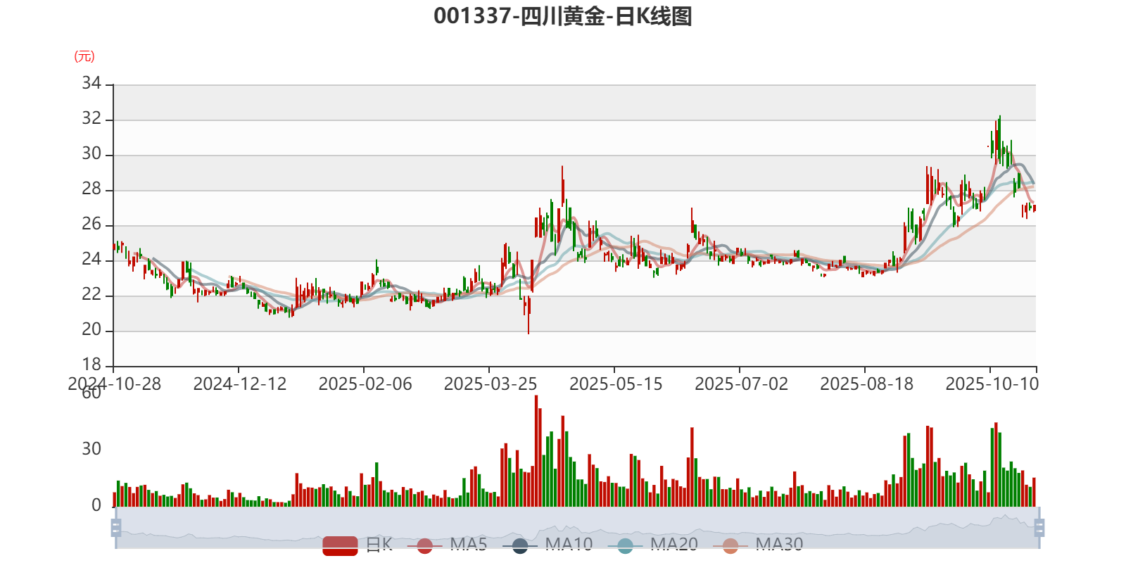 以10月27日收盘价计算,四川黄金目前市盈率(TTM)约为27.1倍,市净率(LF)约6.58倍,市销率(TTM)约12.65倍。