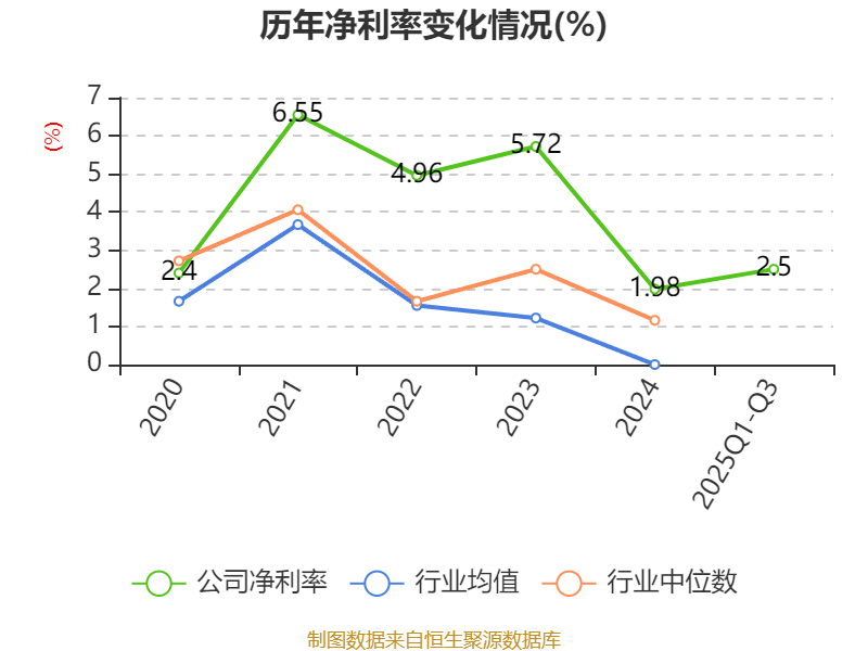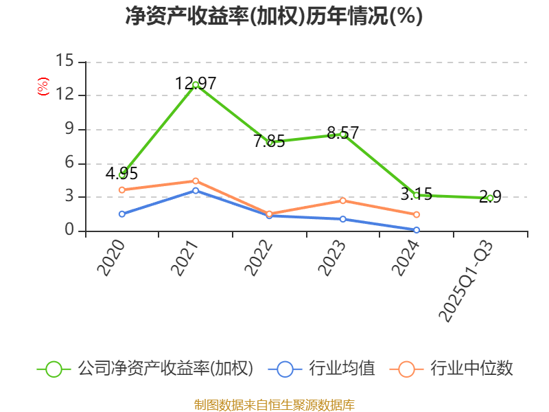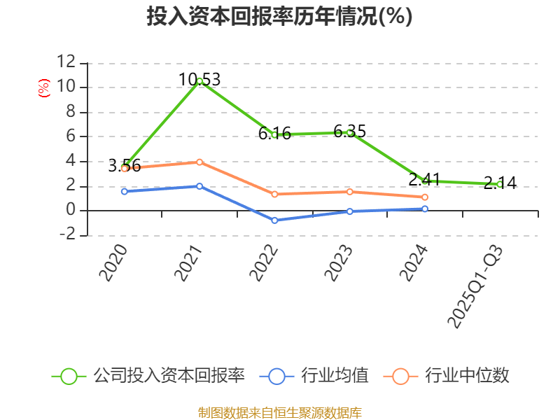 盈利能力方面, 2025年前三季度公司加权平均净资产收益率为2.9%,同比下降0.62个百分点。公司2025年前三季度投入资本回报率为2.14%,较上年同期下降0.5个百分点。