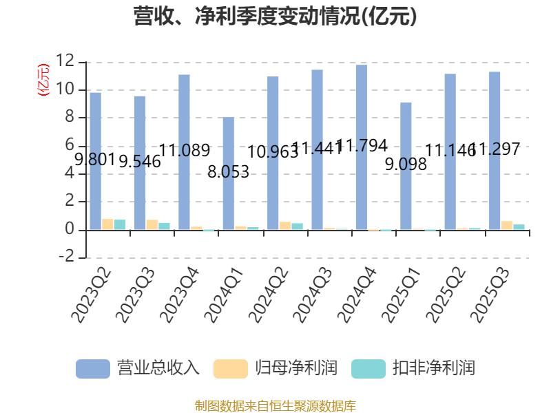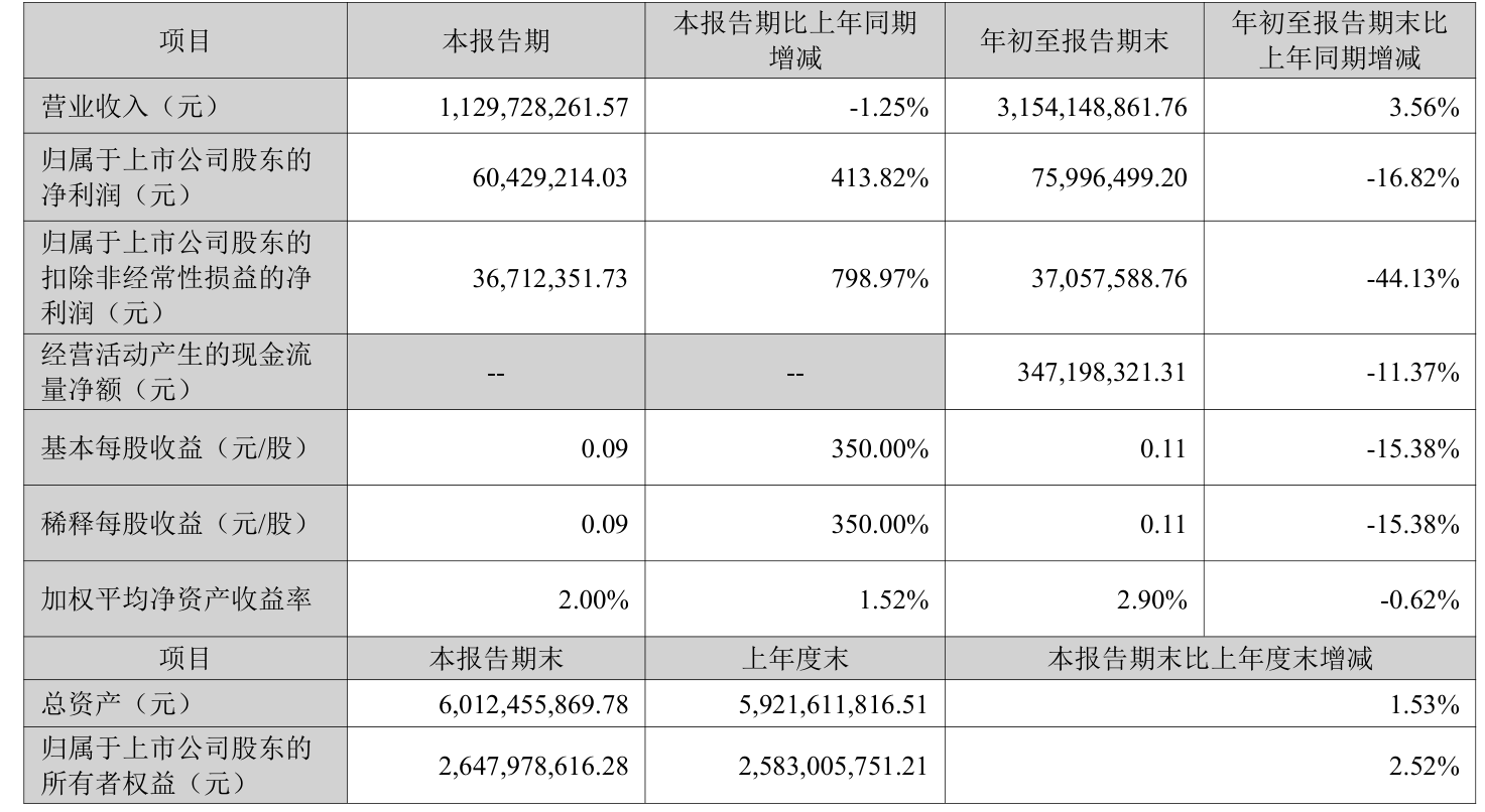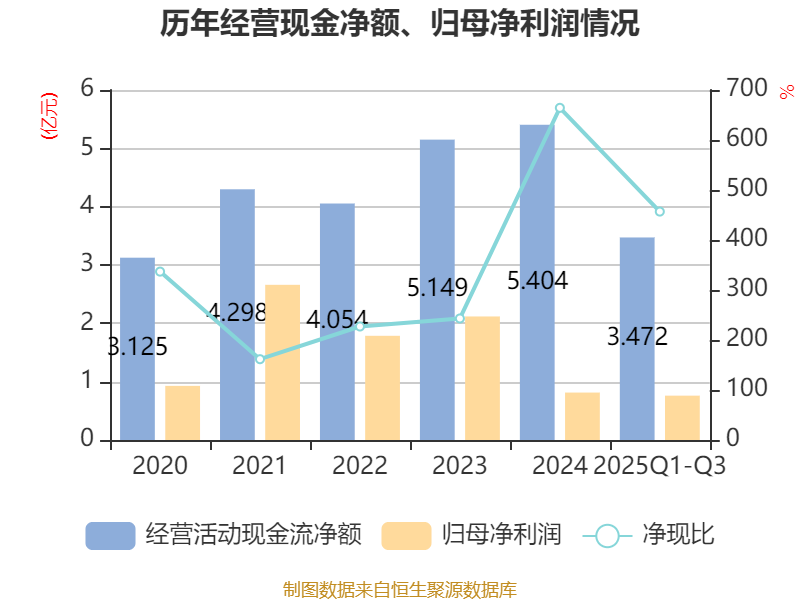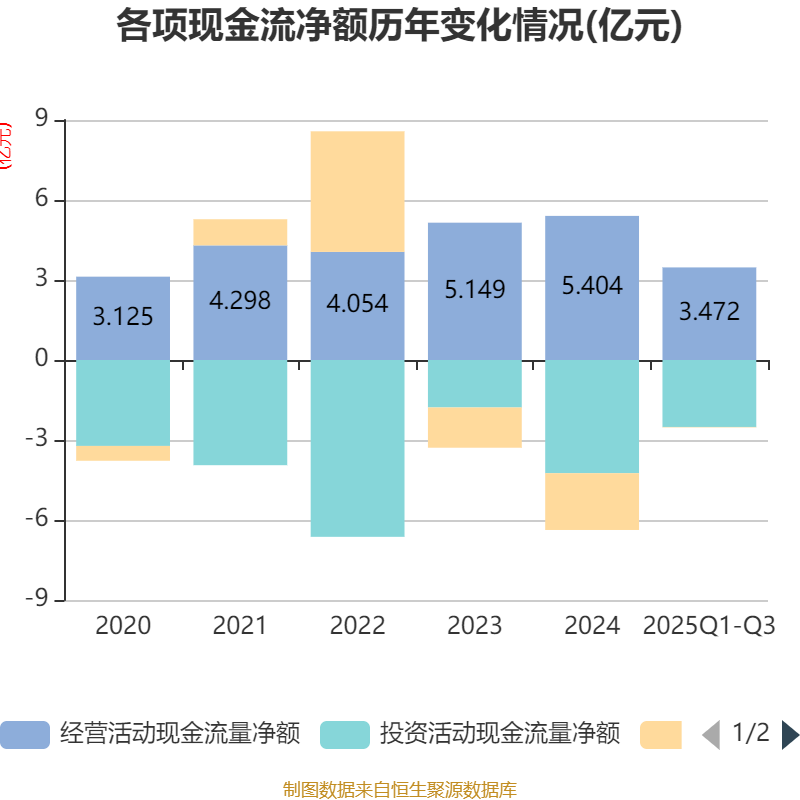 2025年前三季度,公司经营活动现金流净额为3.47亿元,同比下降11.37%;筹资活动现金流净额-172.27万元,同比增加2.28亿元;投资活动现金流净额-2.52亿元,上年同期为-3.48亿元。