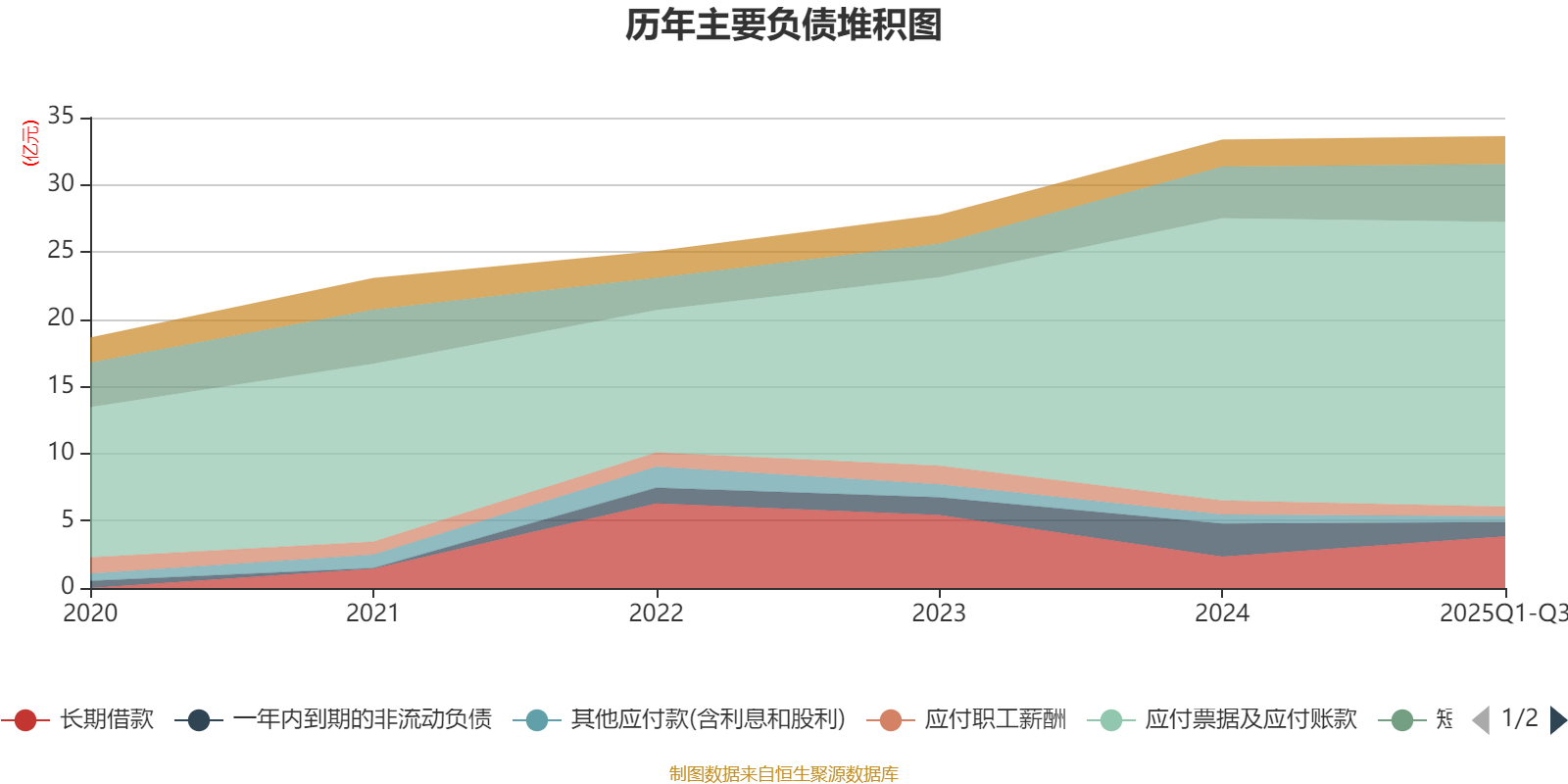 负债重大变化方面,截至2025年三季度末,公司长期借款较上年末增加64.11%,占公司总资产比重上升2.44个百分点;一年内到期的非流动负债较上年末减少56.66%,占公司总资产比重下降2.37个百分点;短期借款较上年末增加11.95%,占公司总资产比重上升0.67个百分点;应付职工薪酬较上年末减少33.25%,占公司总资产比重下降0.61个百分点。