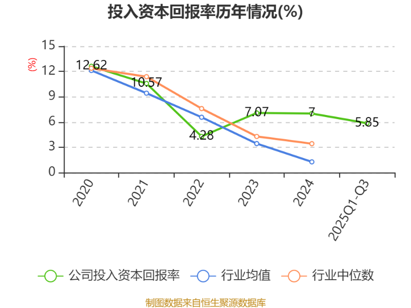 盈利能力方面, 2025年前三季度公司加权平均净资产收益率为14.38%。公司2025年前三季度投入资本回报率为5.85%,较上年同期下降5个百分点。