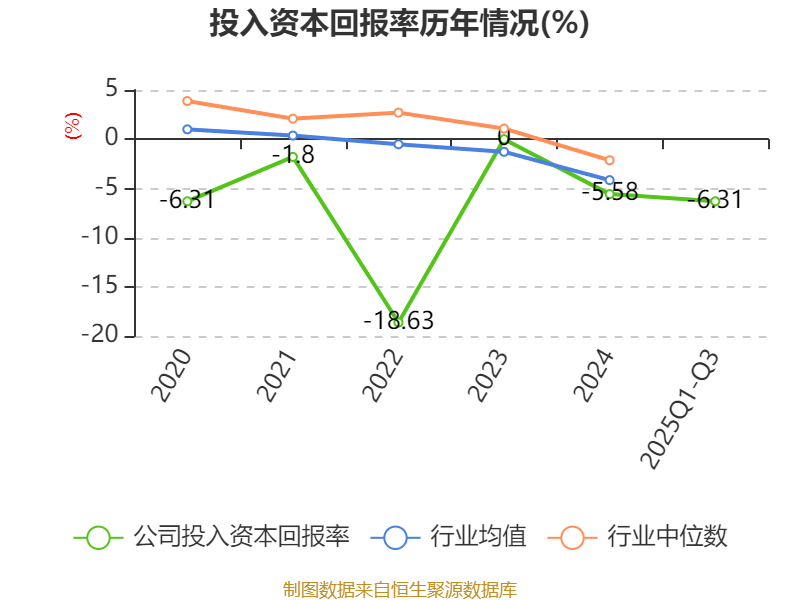 盈利能力方面, 2025年前三季度公司加权平均净资产收益率为-2.65%,同比上升2.64个百分点。公司2025年前三季度投入资本回报率为-6.31%,较上年同期下降3.56个百分点。