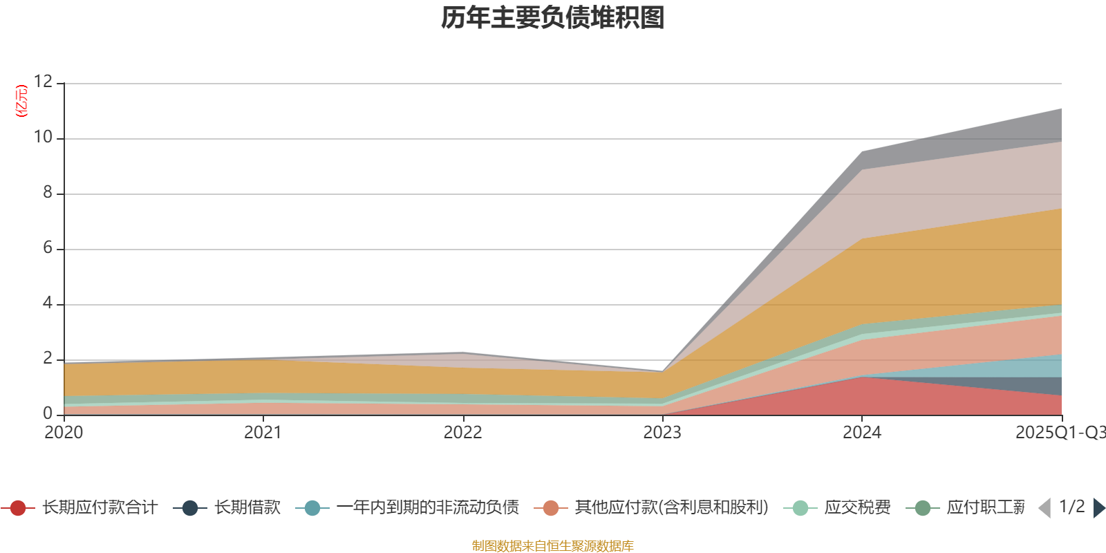 负债重大变化方面,截至2025年三季度末,公司长期应付款合计较上年末减少49.15%,占公司总资产比重下降4.06个百分点;一年内到期的非流动负债较上年末增加1135.06%,占公司总资产比重上升3.95个百分点;长期借款占公司总资产的3.42%,上年末为0;租赁负债较上年末增加172.19%,占公司总资产比重上升1.62个百分点。