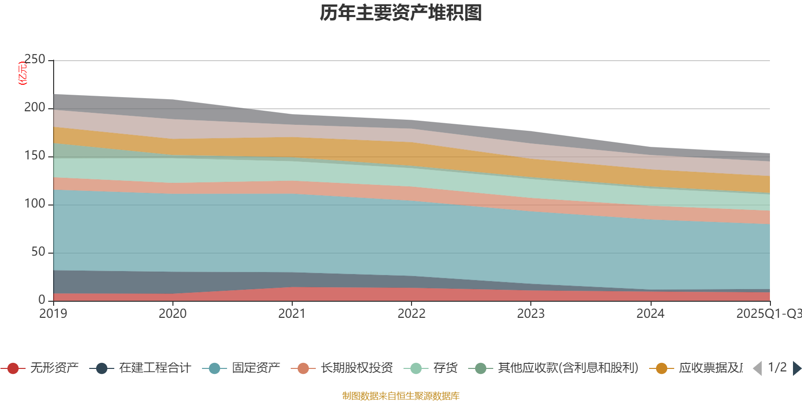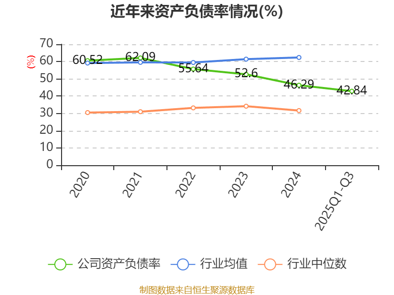 资产重大变化方面,截至2025年三季度末,公司固定资产较上年末减少7.24%,占公司总资产比重下降1.49个百分点;在建工程合计较上年末增加52.94%,占公司总资产比重上升0.81个百分点;预付款项较上年末增加61.31%,占公司总资产比重上升0.76个百分点;货币资金较上年末增加1.27%,占公司总资产比重上升0.52个百分点。