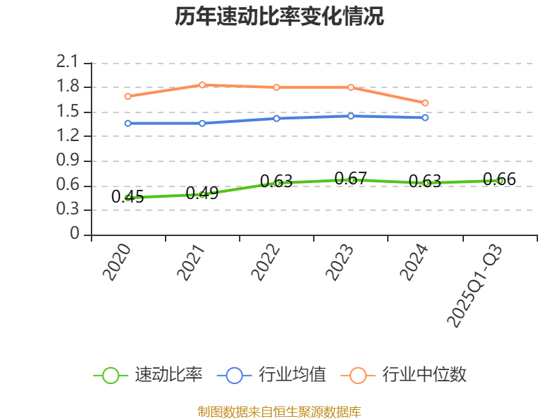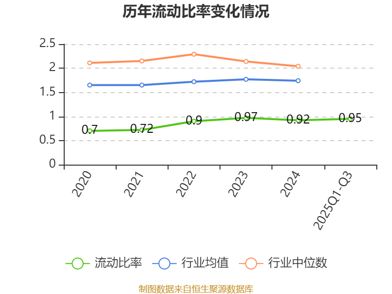 2025年前三季度,公司流动比率为0.95,速动比率为0.66。